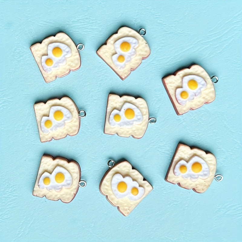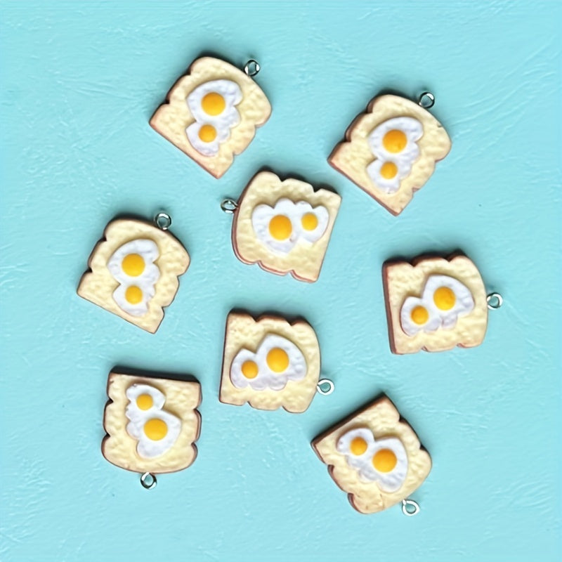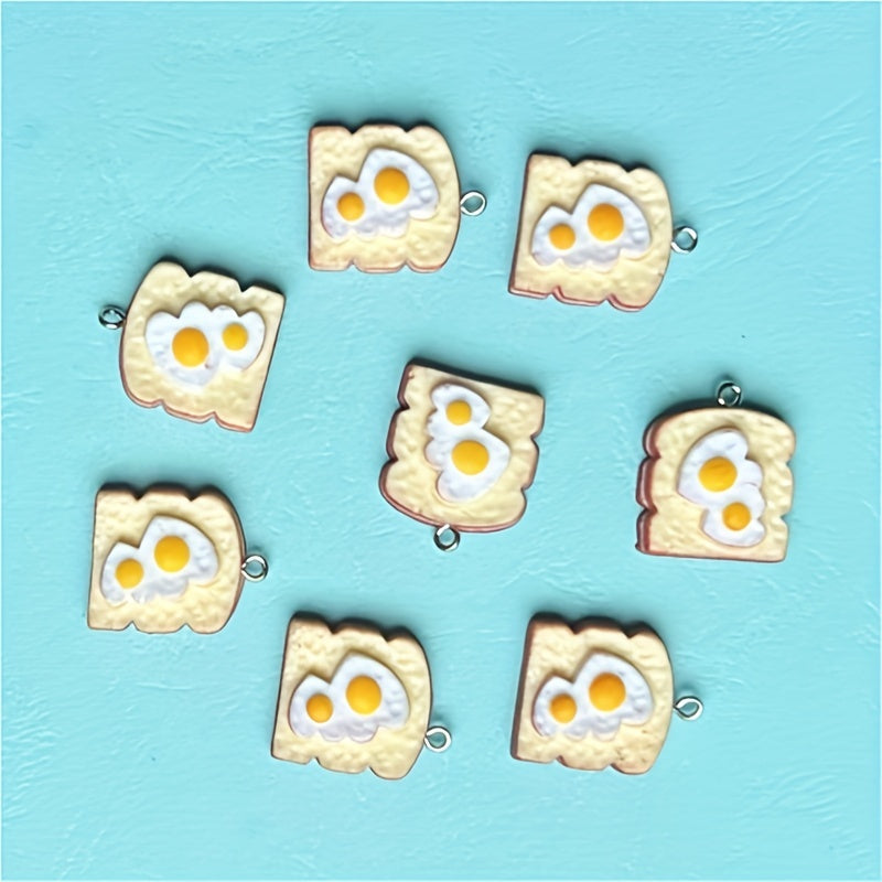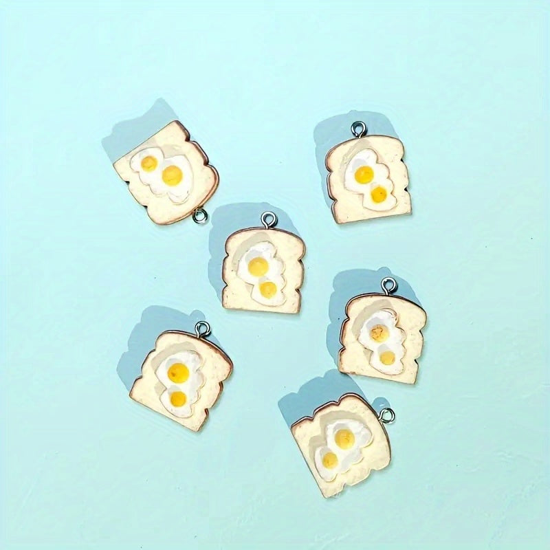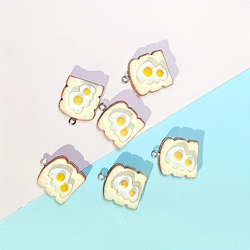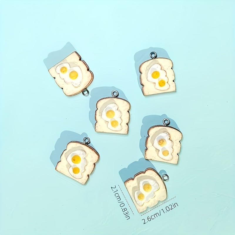Enhance your accessories with these 6pcs poached egg decor bread DIY pendants. Perfect for earrings, bracelets, necklaces, and more.