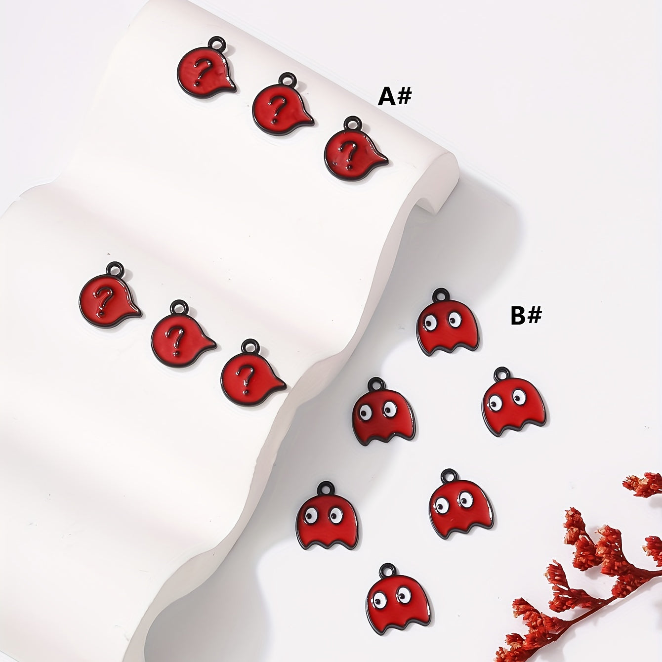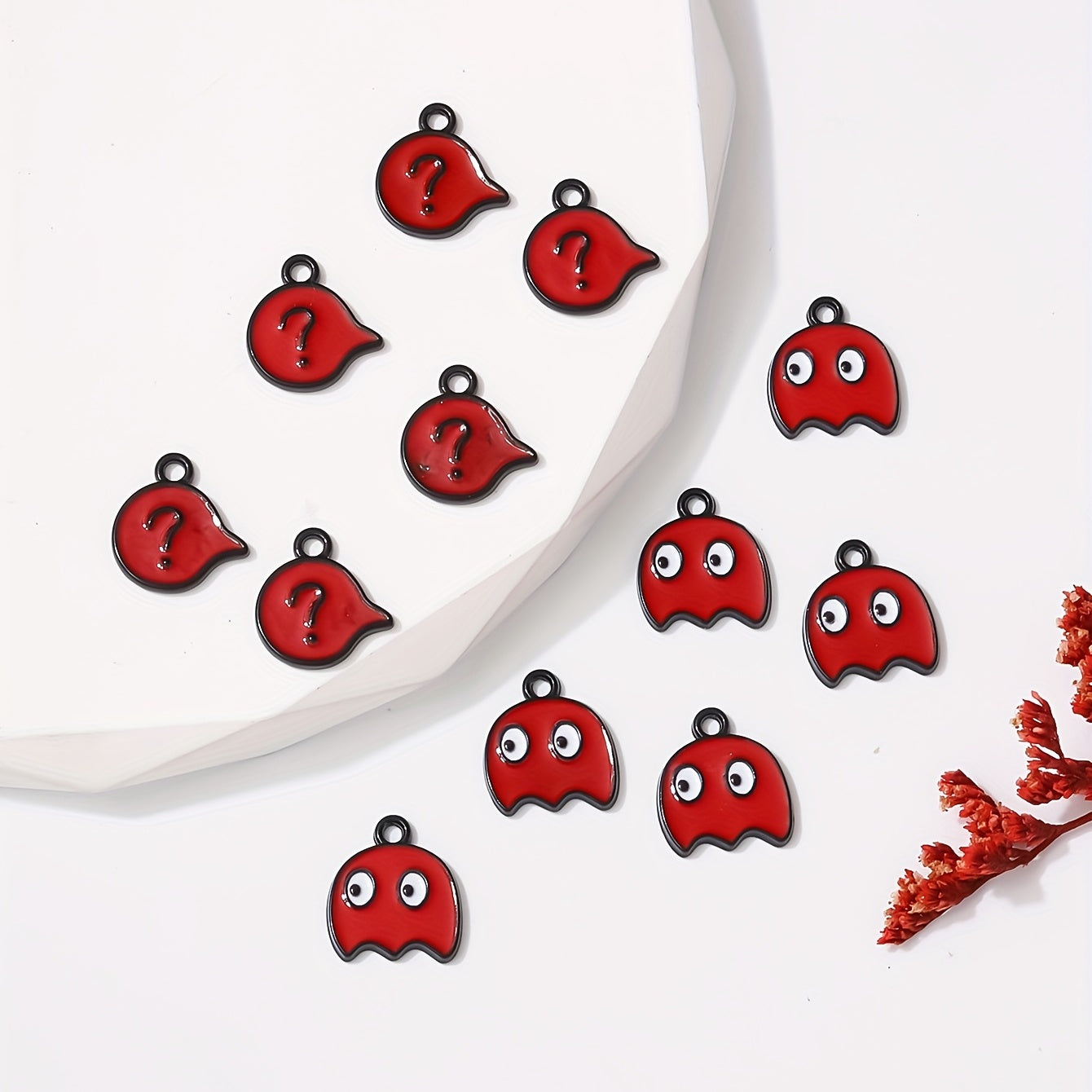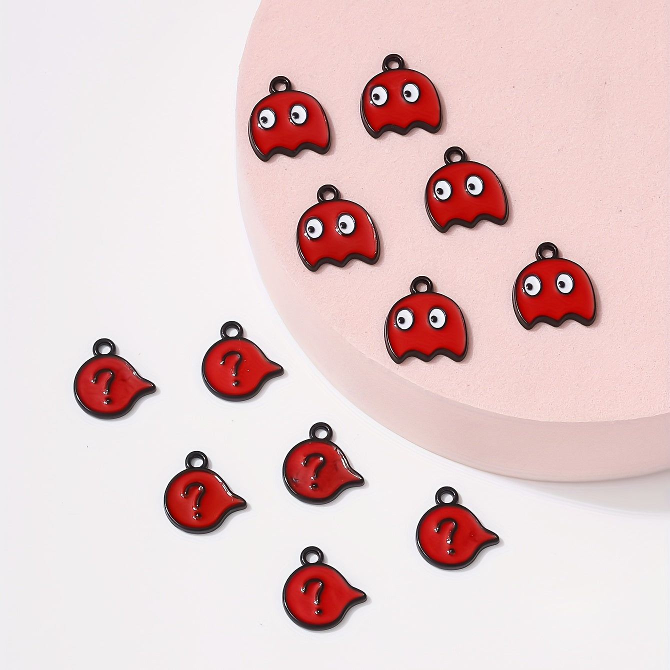Get creative with these 6pcs drip oil red cartoon ghost and mark alloy pendants for making necklaces, bracelets, and earrings.