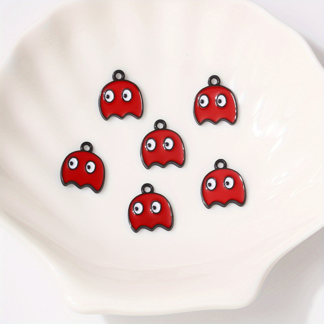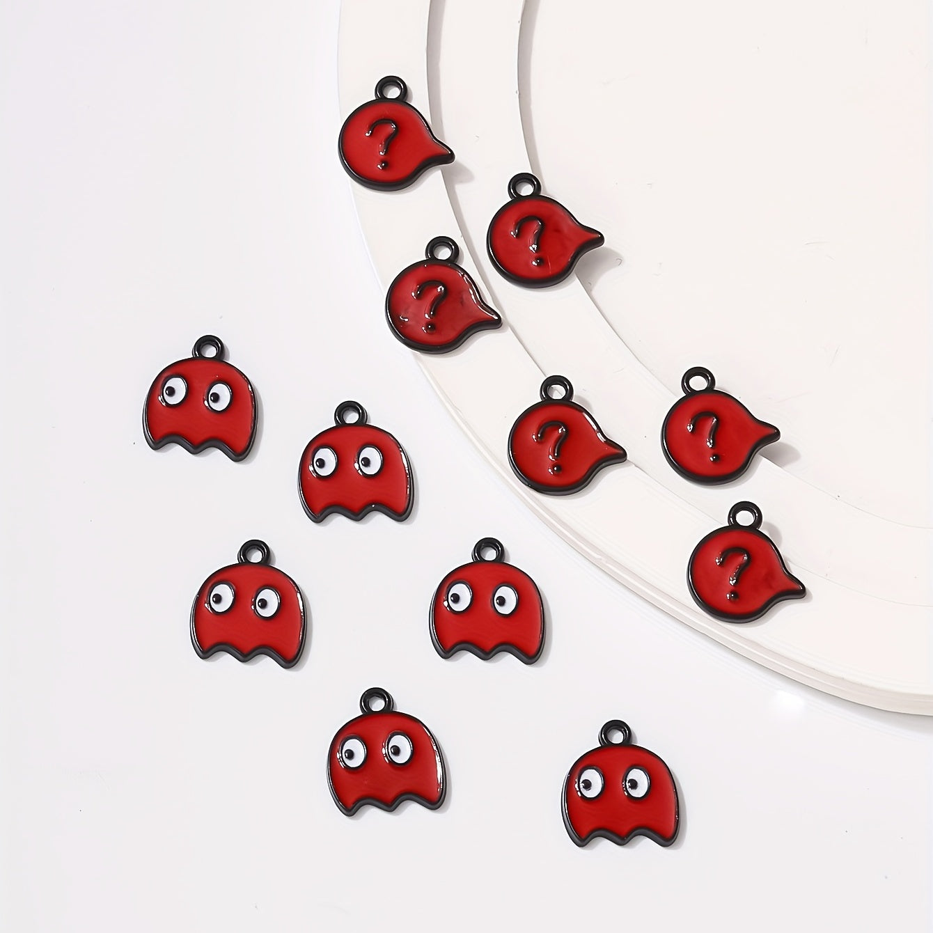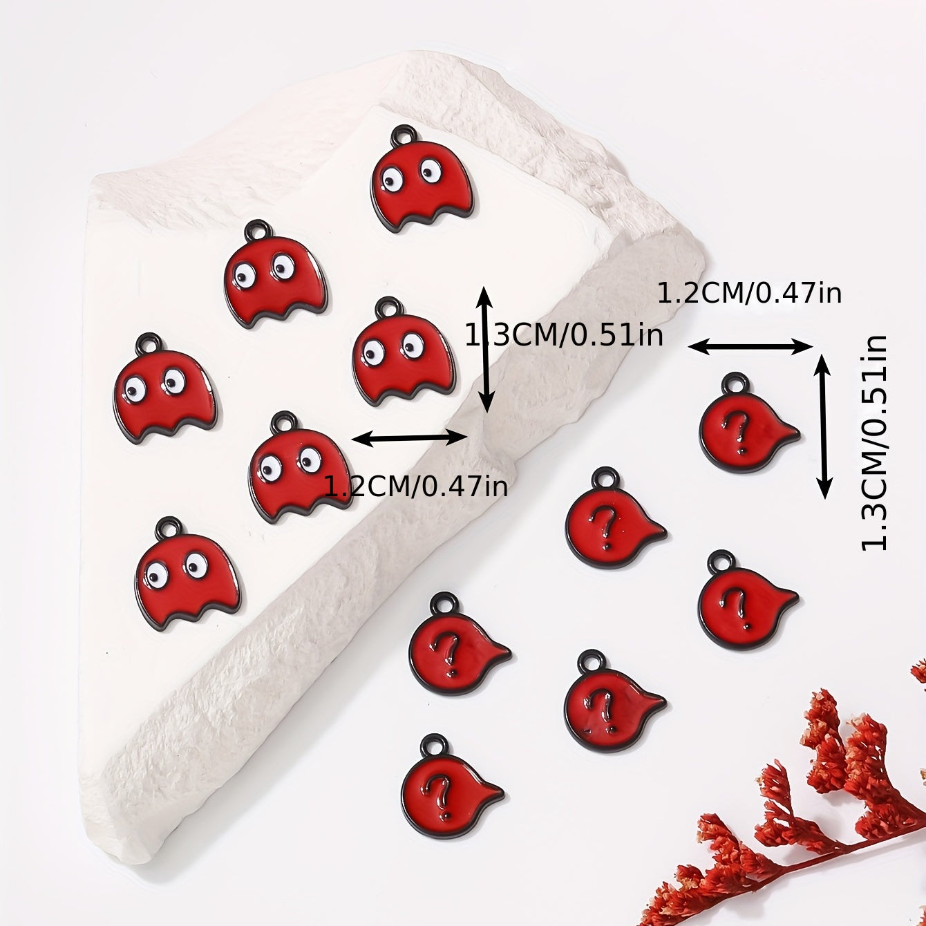 Get creative with these 6pcs drip oil red cartoon ghost and mark alloy pendants for making necklaces, bracelets, and earrings.