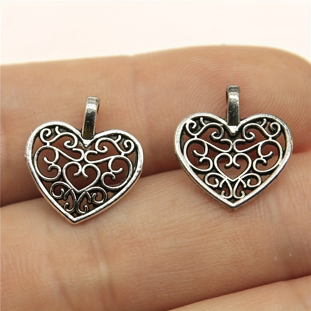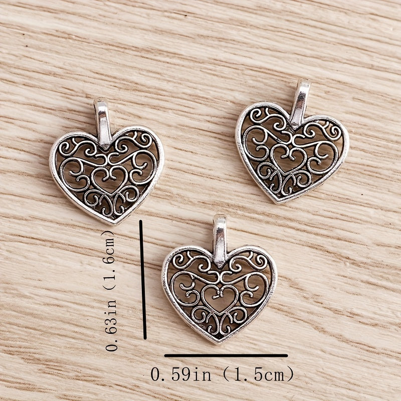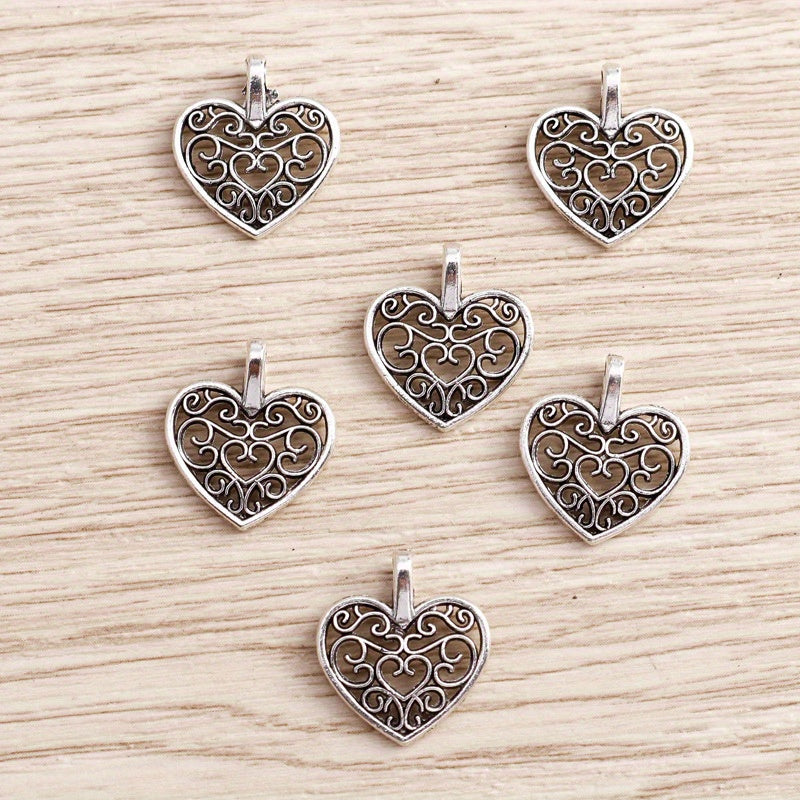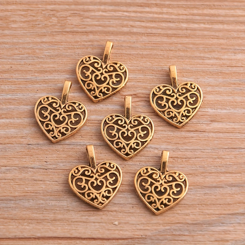 This set includes 6 retro hollow heart pendants for necklace or bracelet DIY jewelry projects.