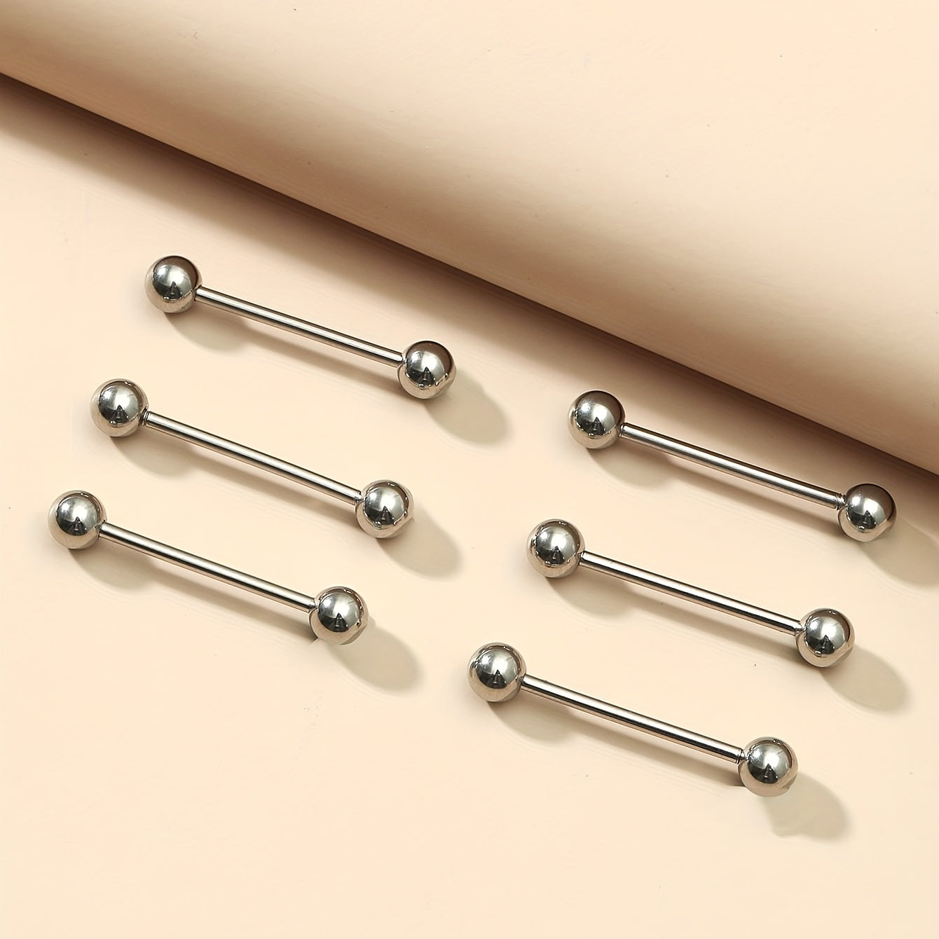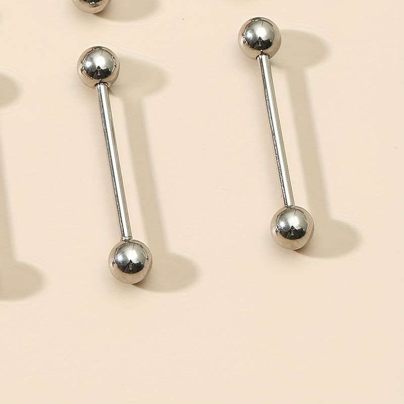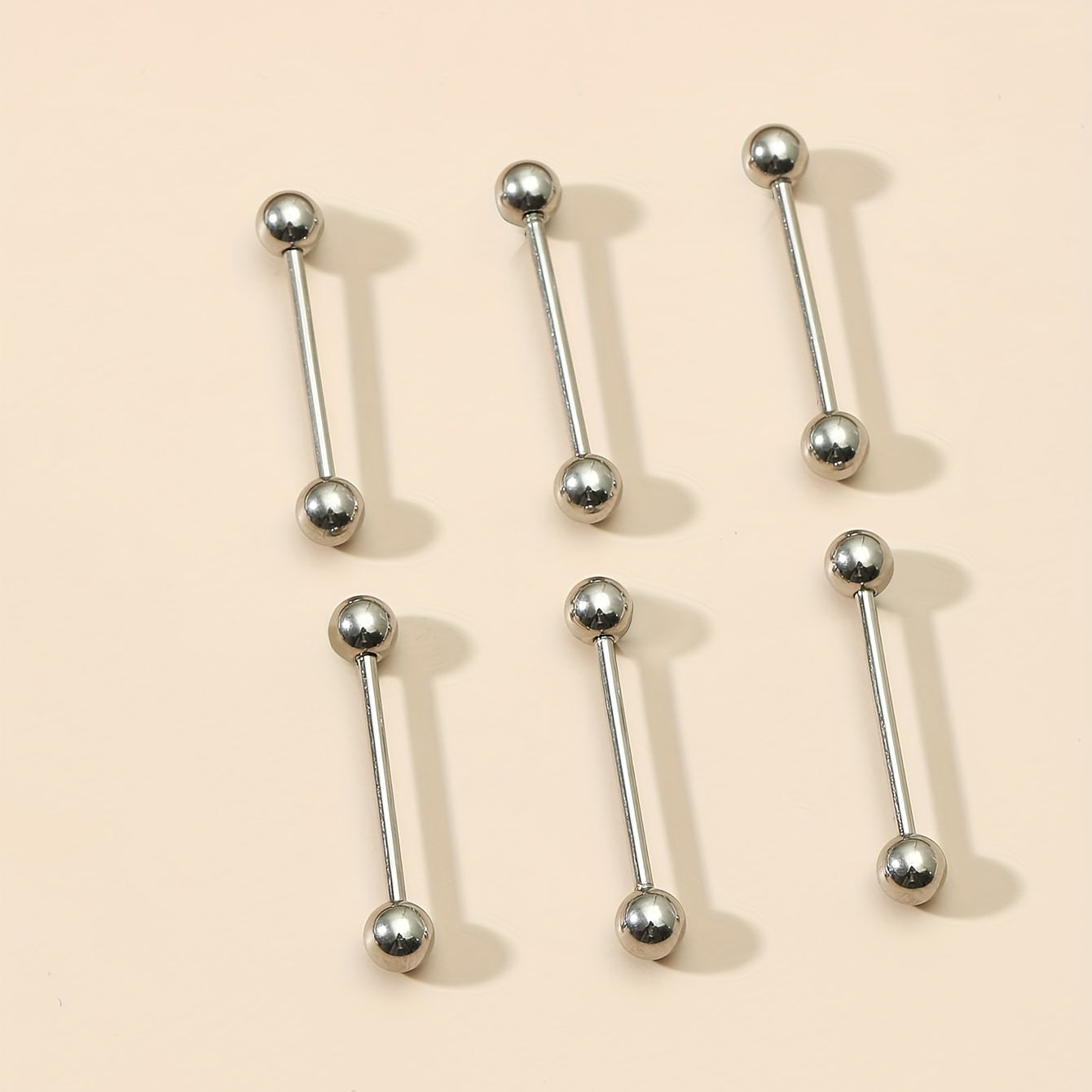 This set includes 6 minimalist stainless steel tongue rings suitable for both men and women.