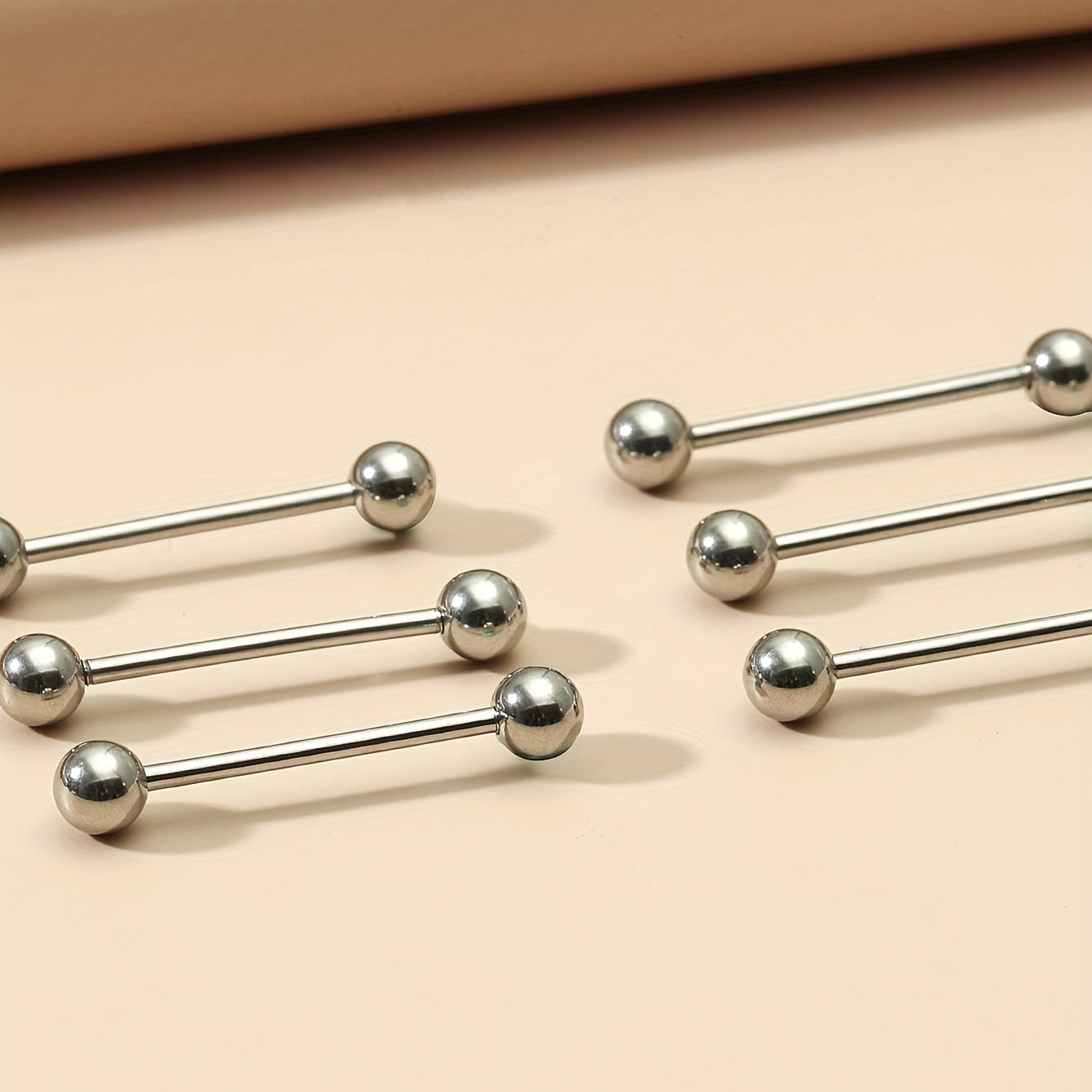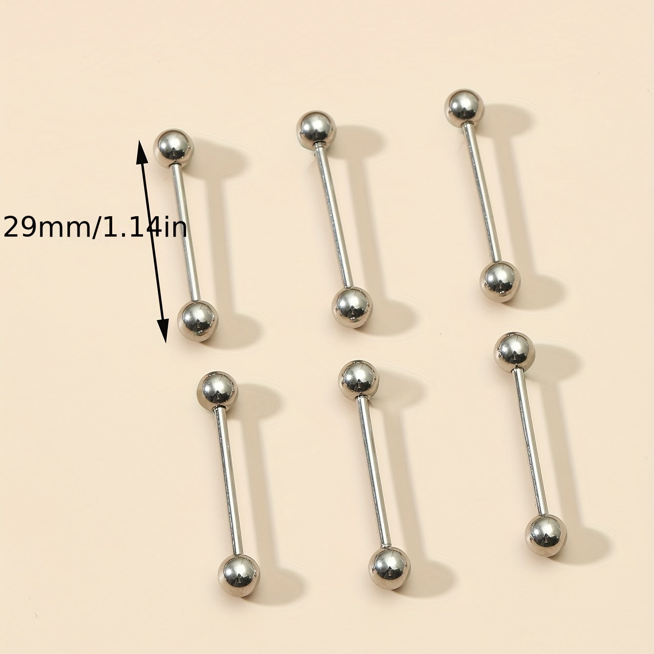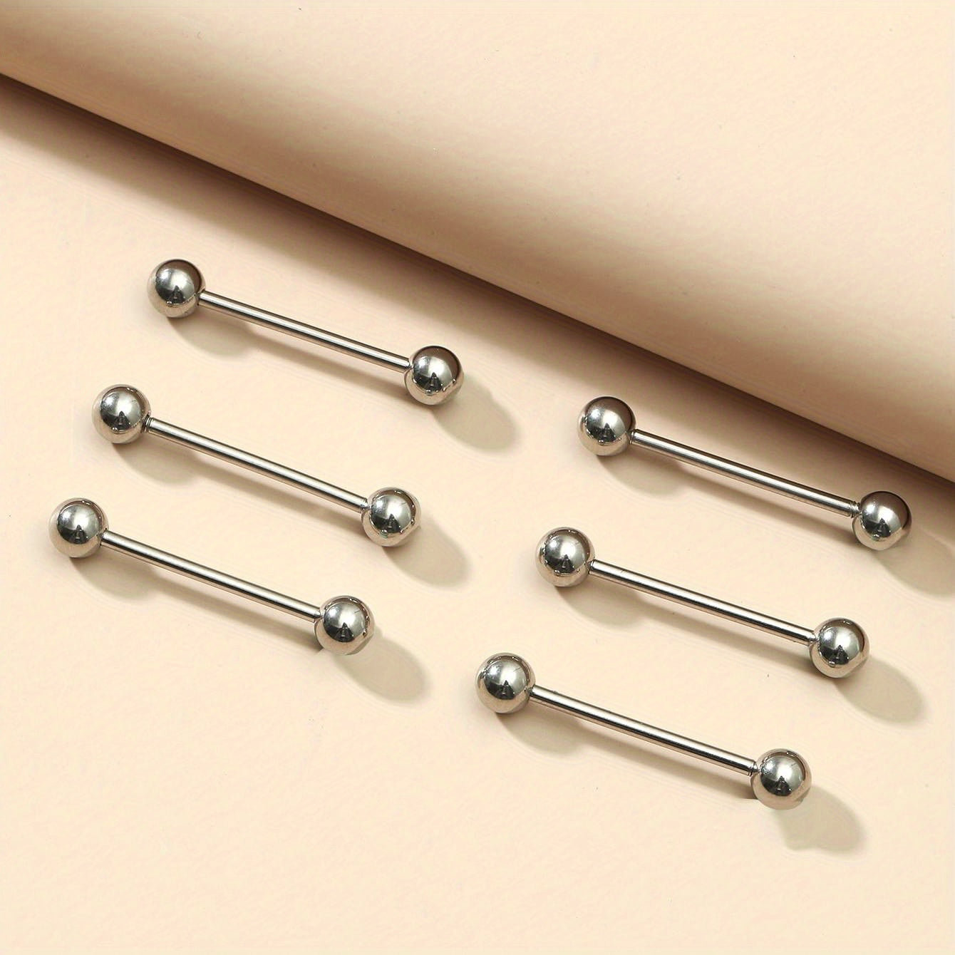 This set includes 6 minimalist stainless steel tongue rings suitable for both men and women.