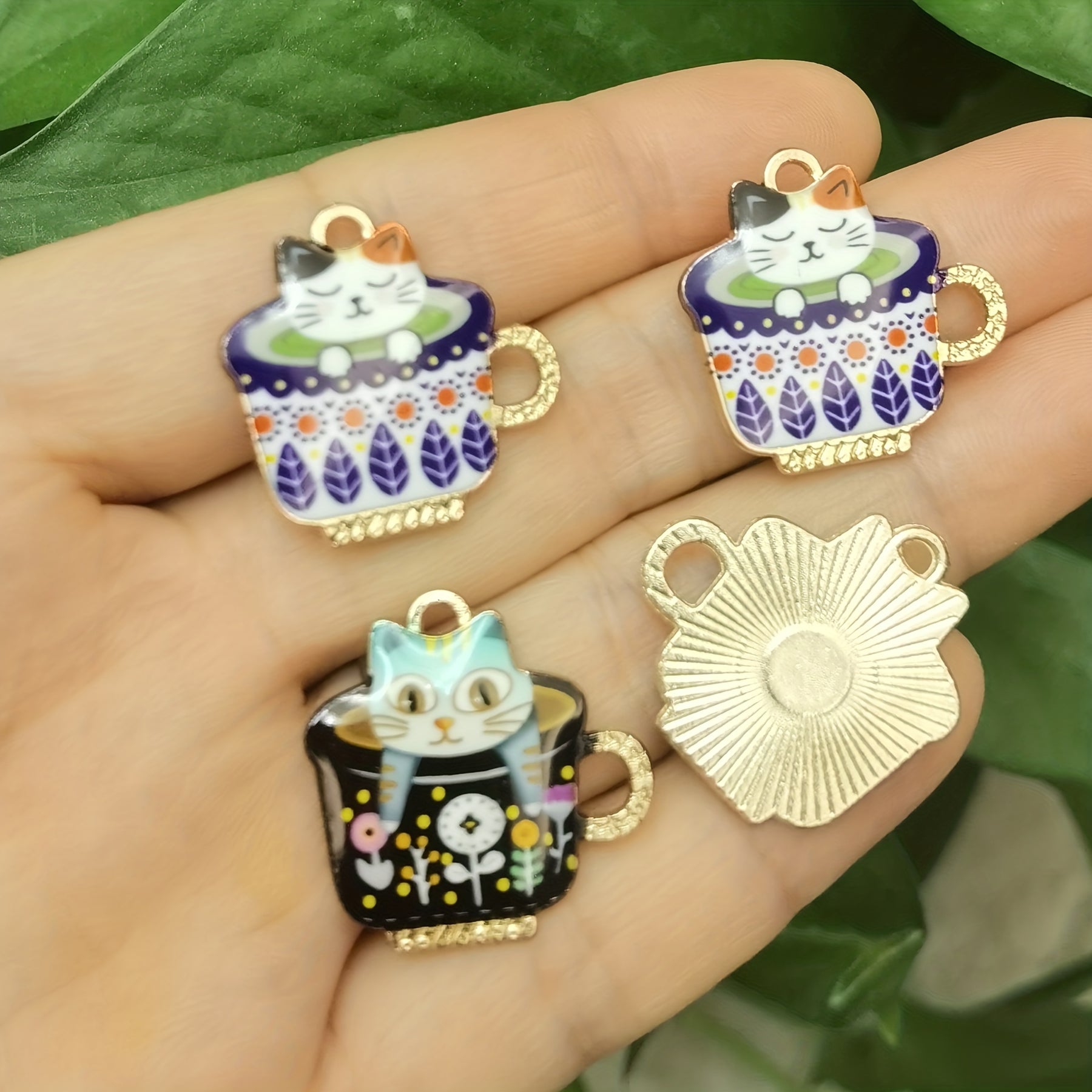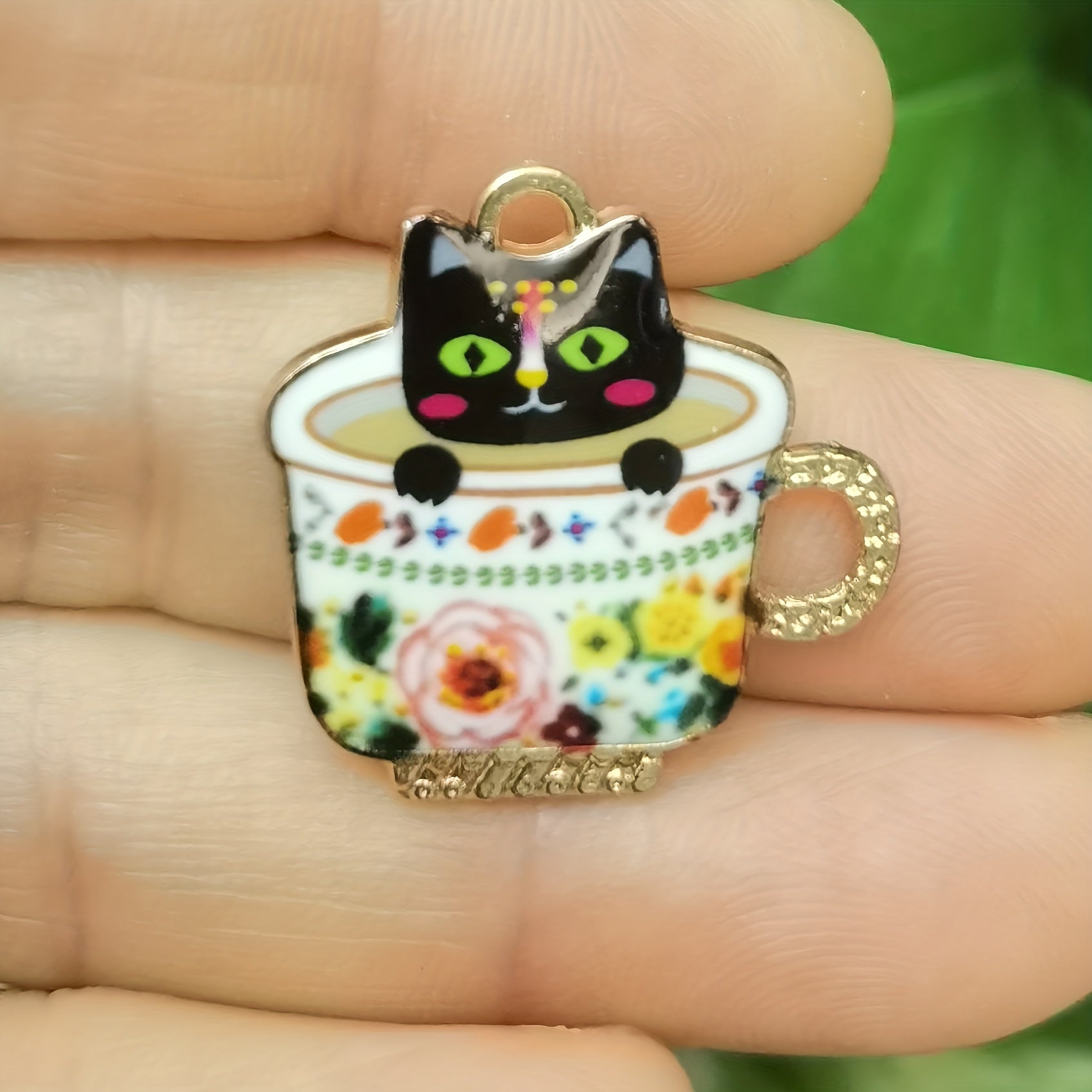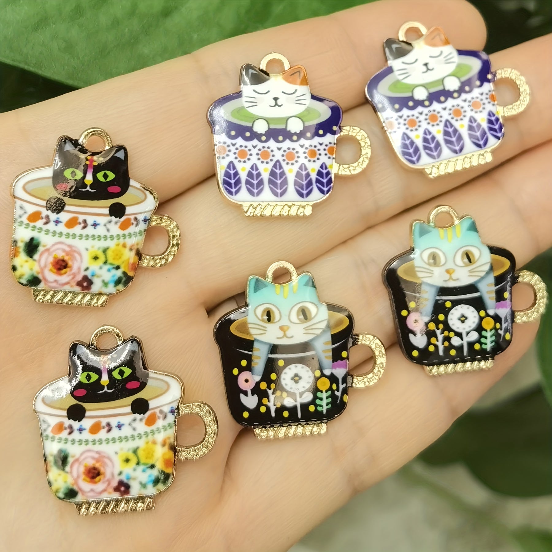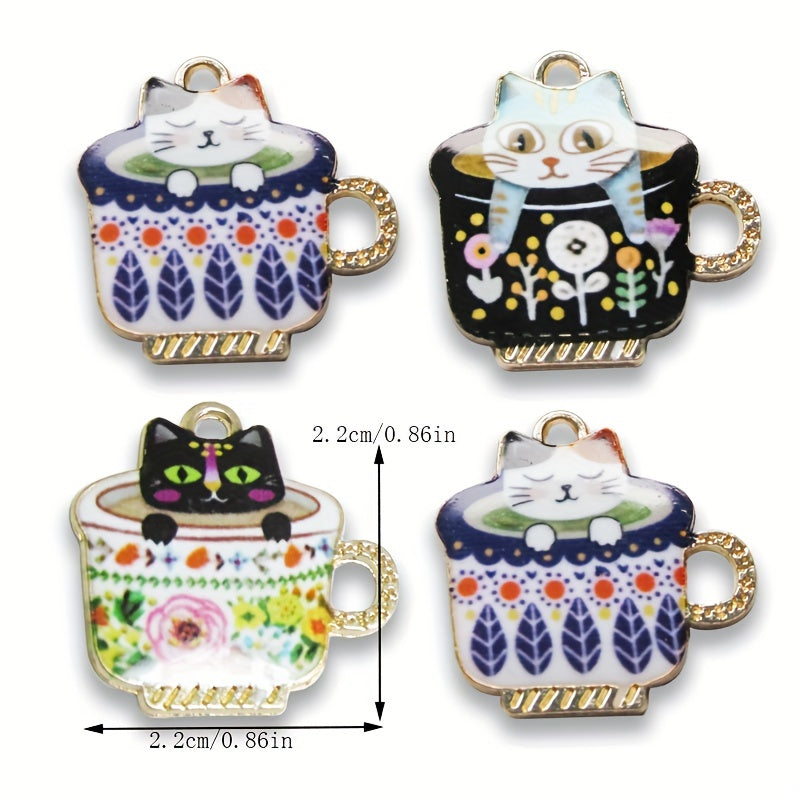 Add a touch of charm to your jewelry creations with these 6 teacup cat enamel charms pendants. Perfect for DIY necklace projects and crafting accessories.