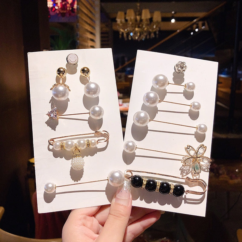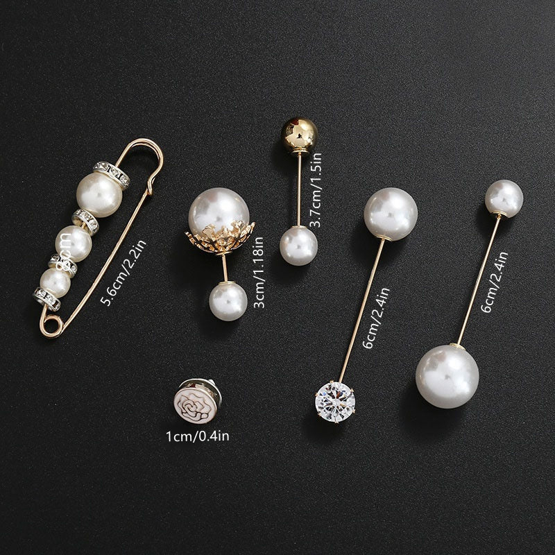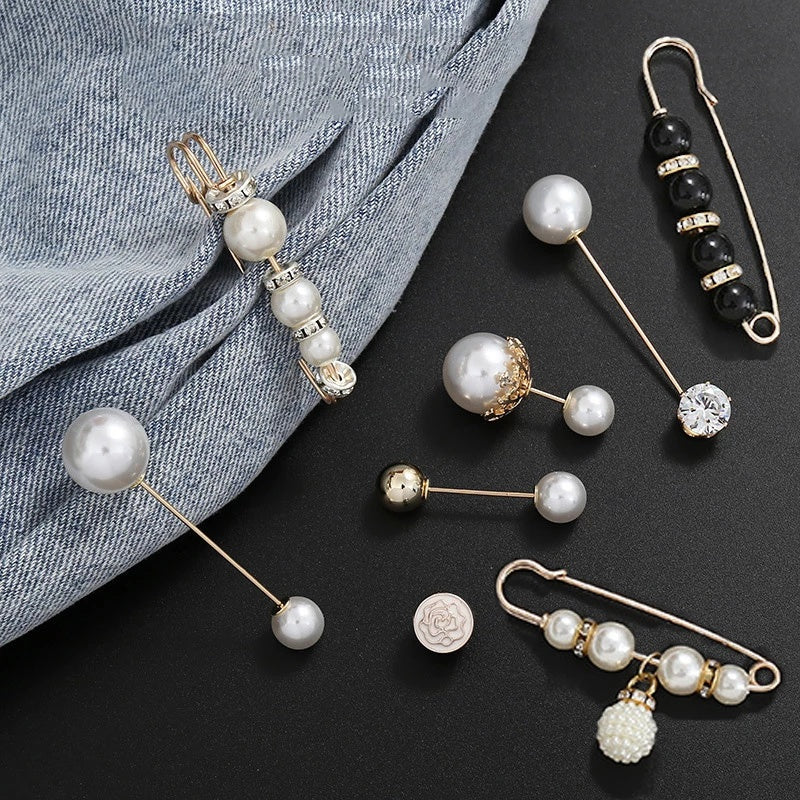 6Pcs Waist Tightener Buckle Sweater Shawl Clips Faux Pearl Rhinestone