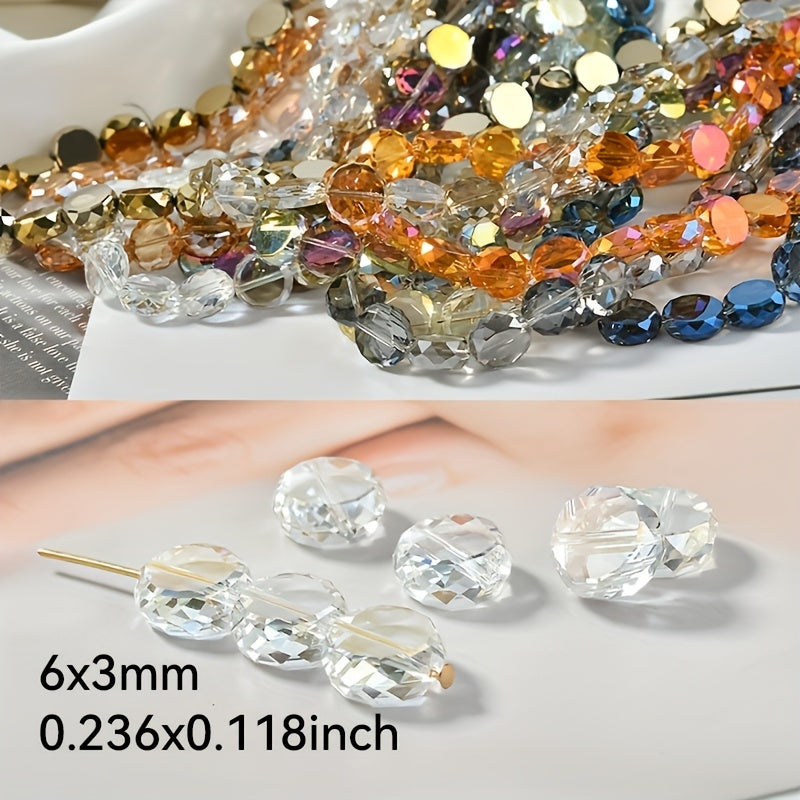 These 6x3mm faceted glass beads are perfect for DIY jewelry projects. Use them to create stunning necklaces, bracelets, and more.