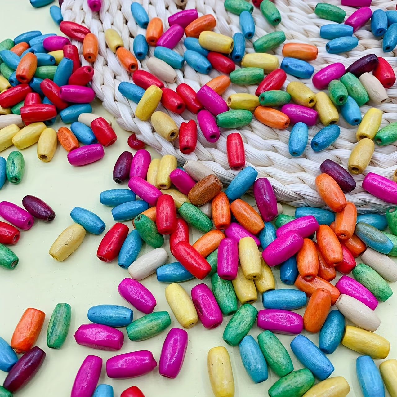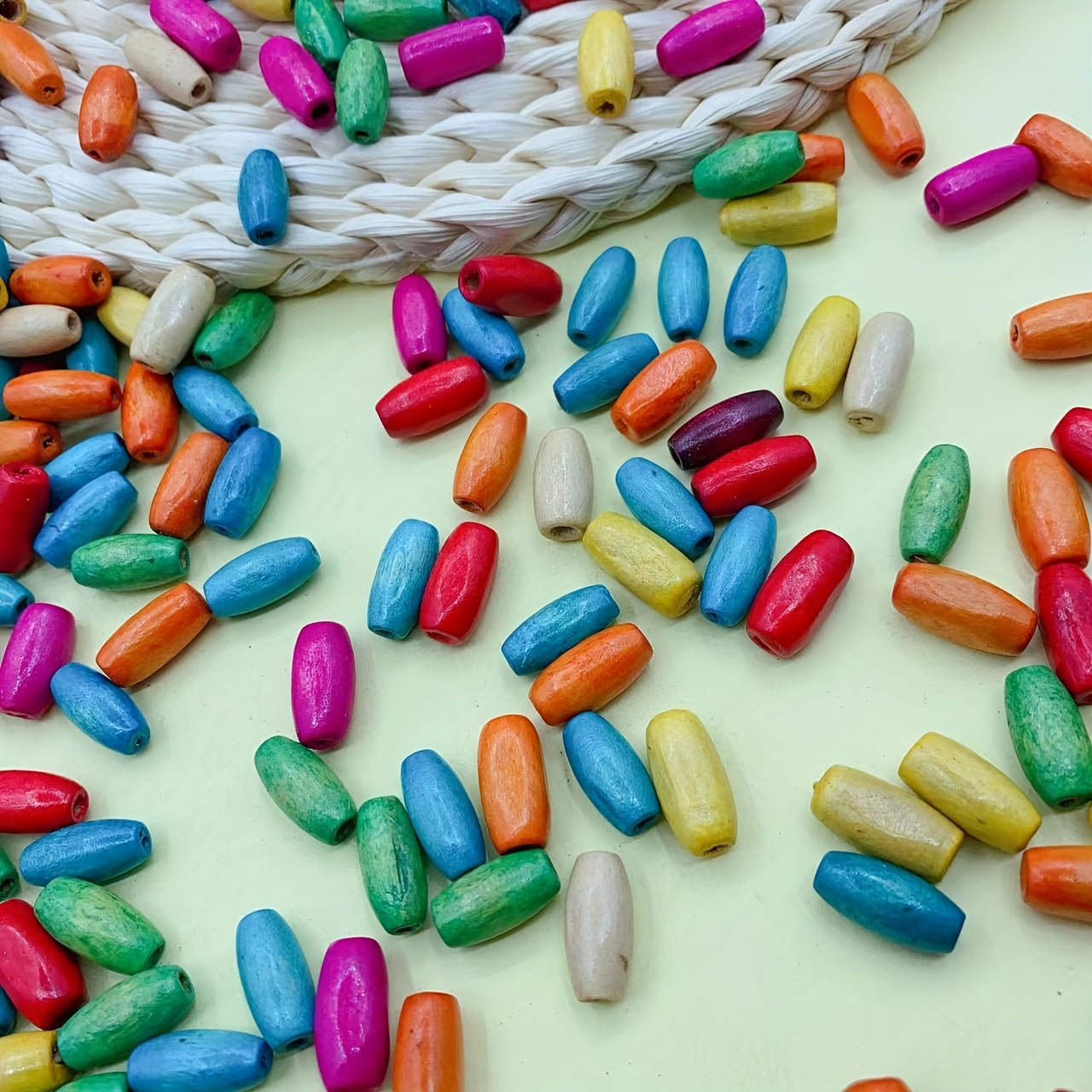 Enhance your crafting projects with this set of 70 short round barrel wooden beads. Ideal for creating bracelets, necklaces, earrings, clothing embellishments, and doll crafts.