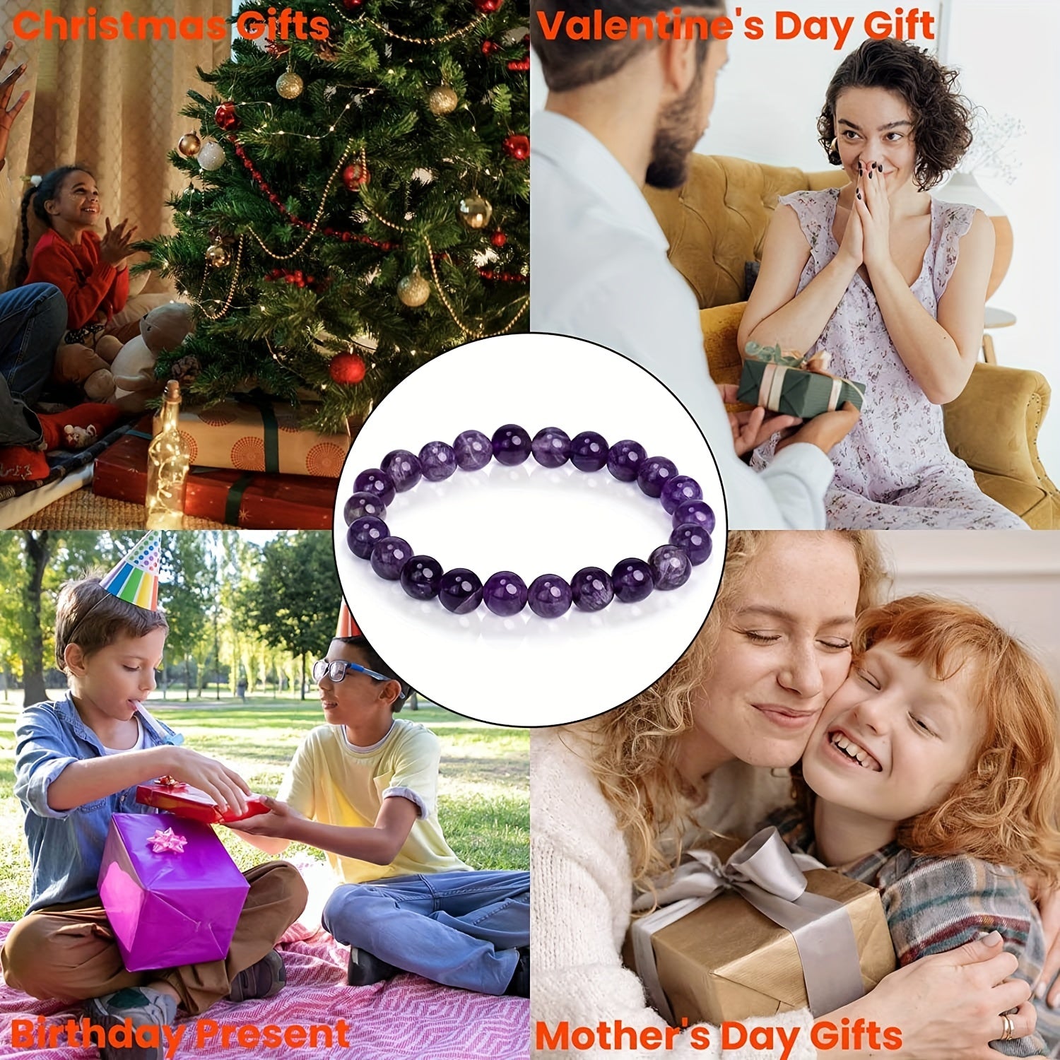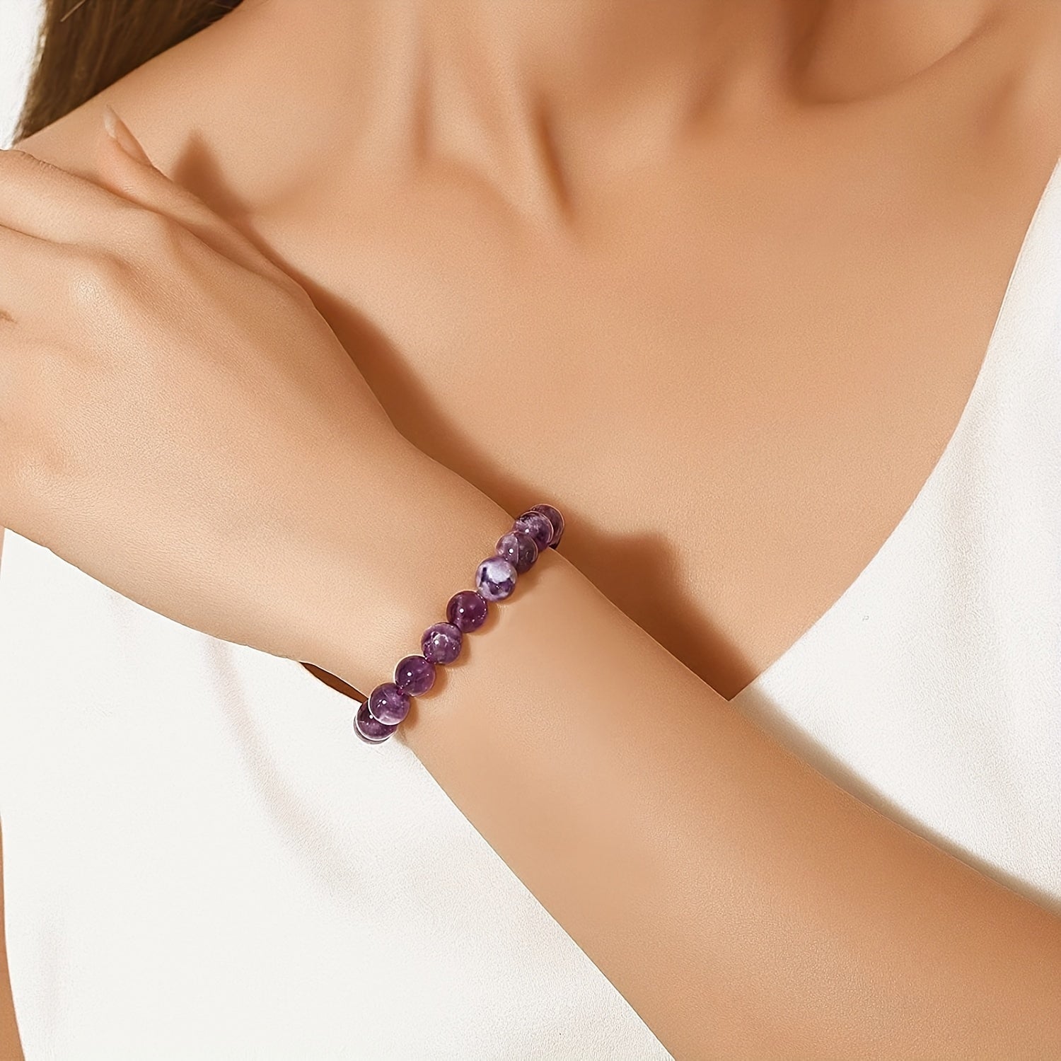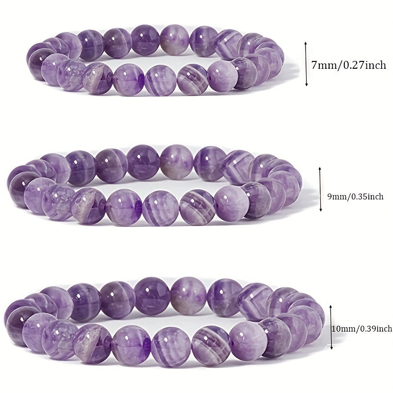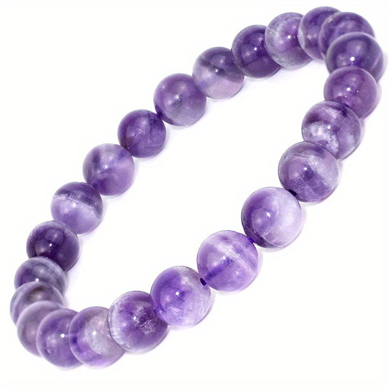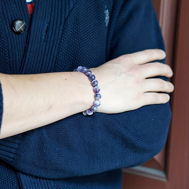 This stretch bracelet features round beads made of half gemstones, available in sizes 7mm, 9mm, and 10mm. Perfect for adding a touch of elegance to your outfit.