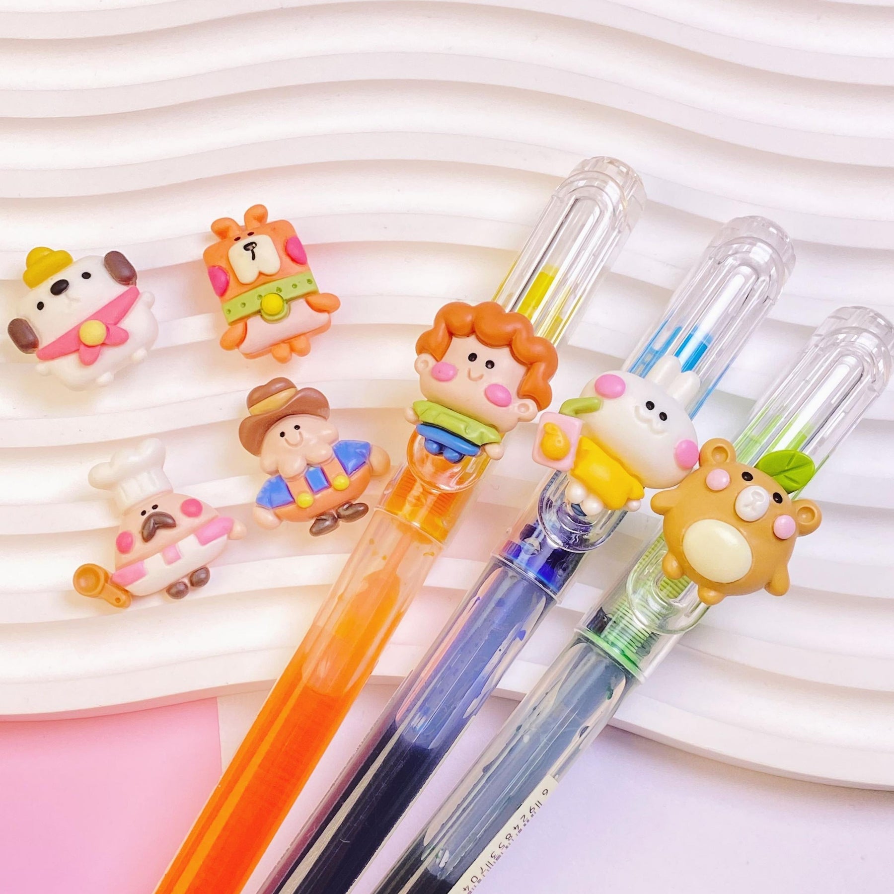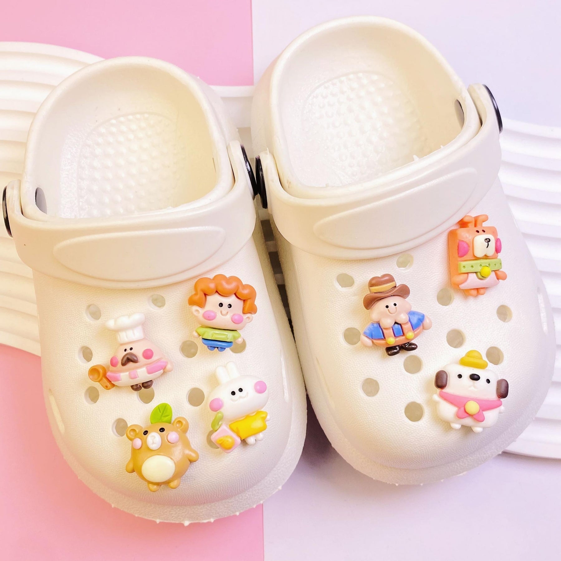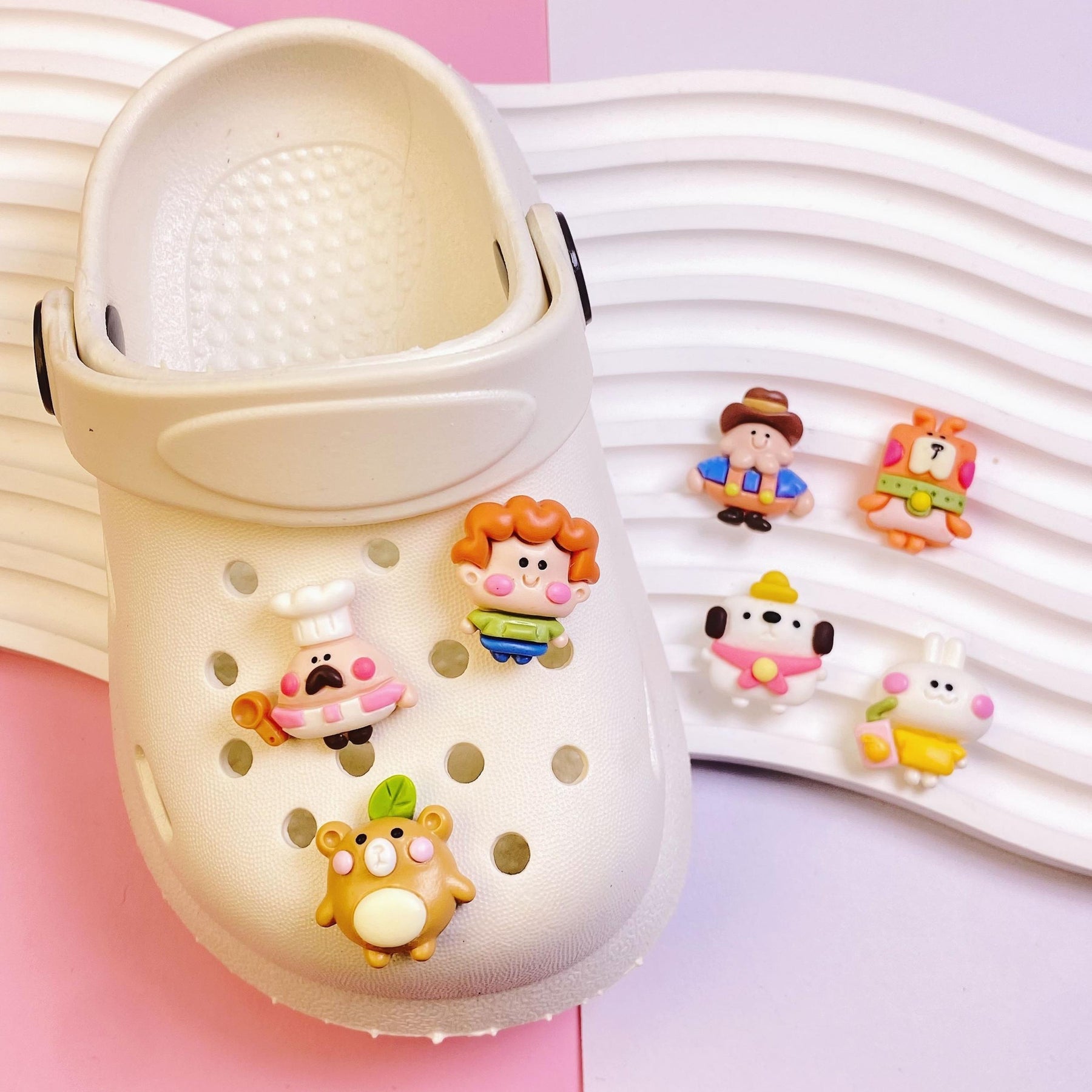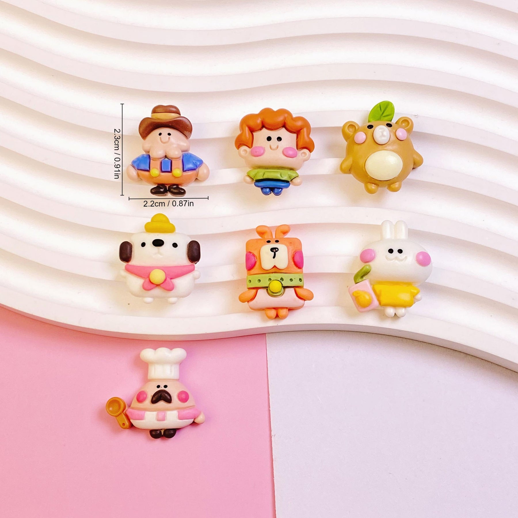 Enhance your DIY projects with this set of 7 colorful and cute cartoon character resin charms. Perfect for hair clips, phone cases, photo frames, wall decorations, and scrapbooking.