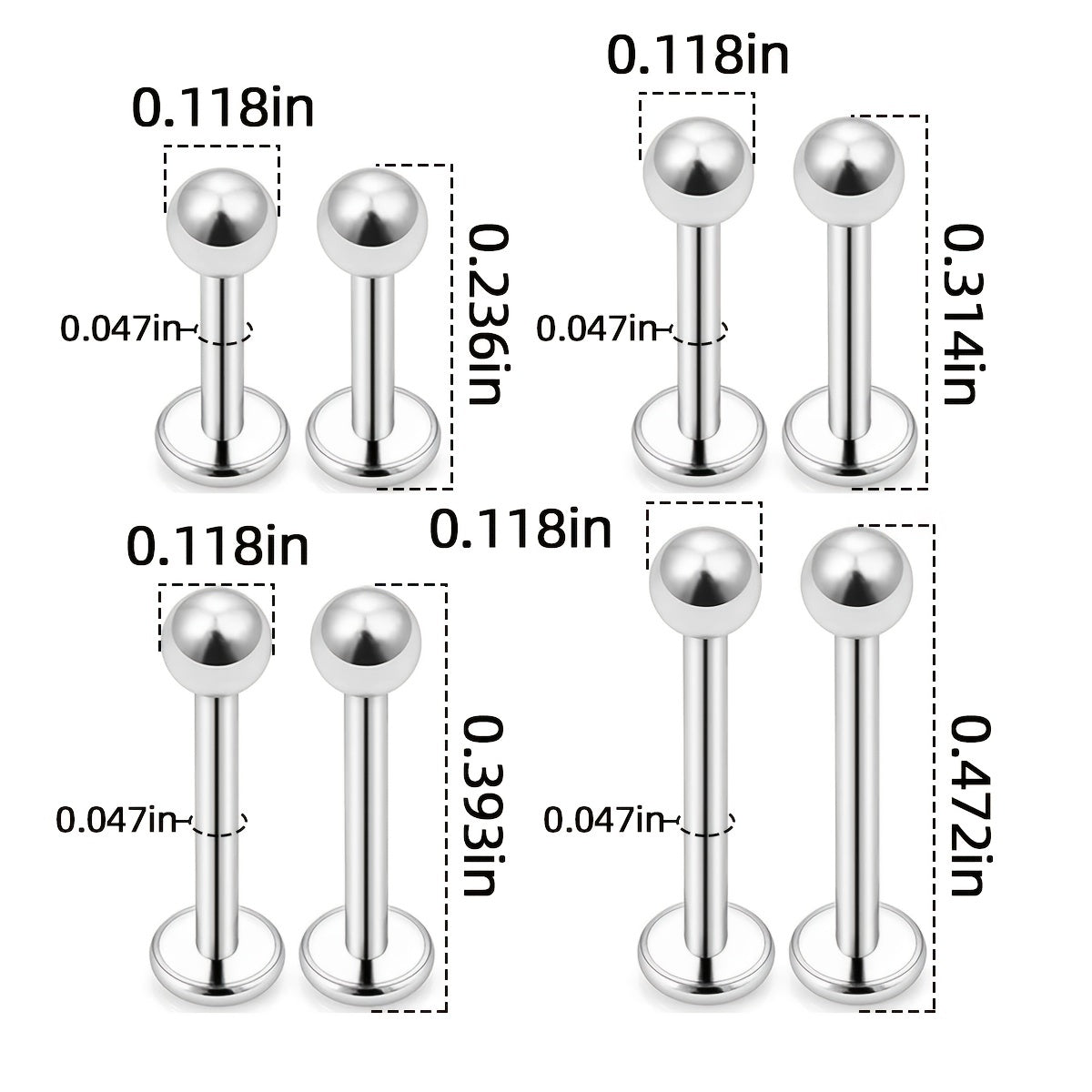This set includes 8 pieces of barbell lip ear rings for cartilage piercing. Suitable for unisex use.
