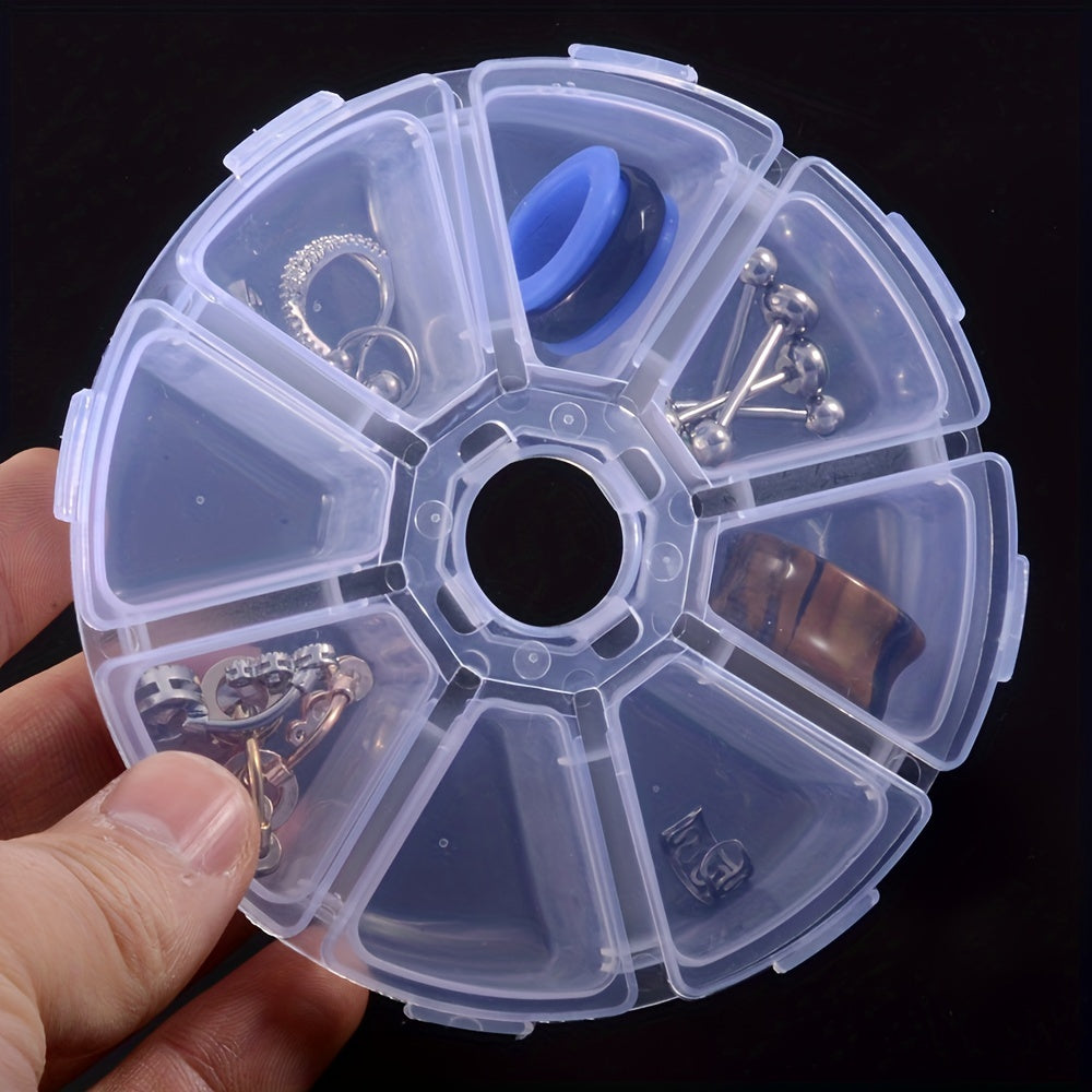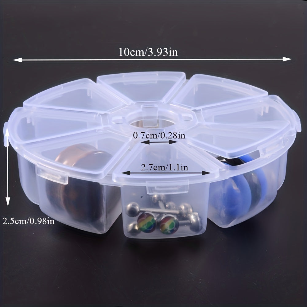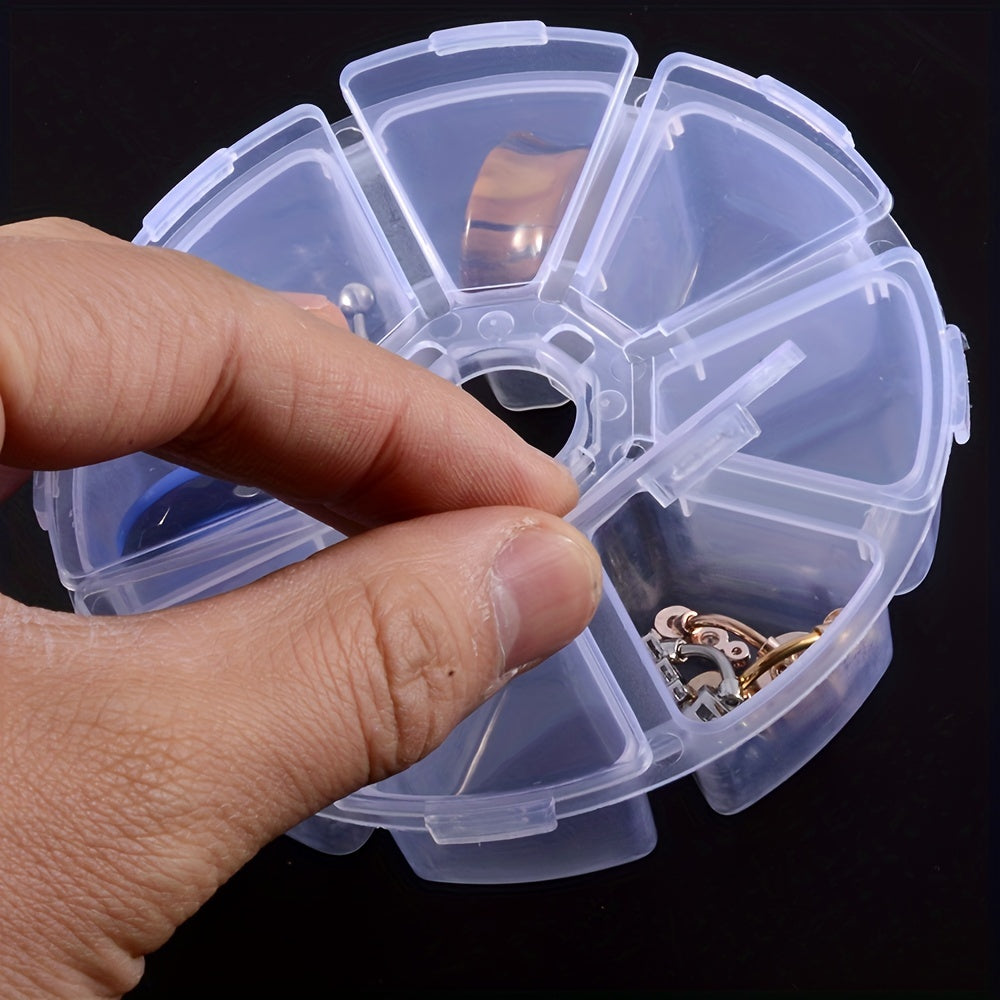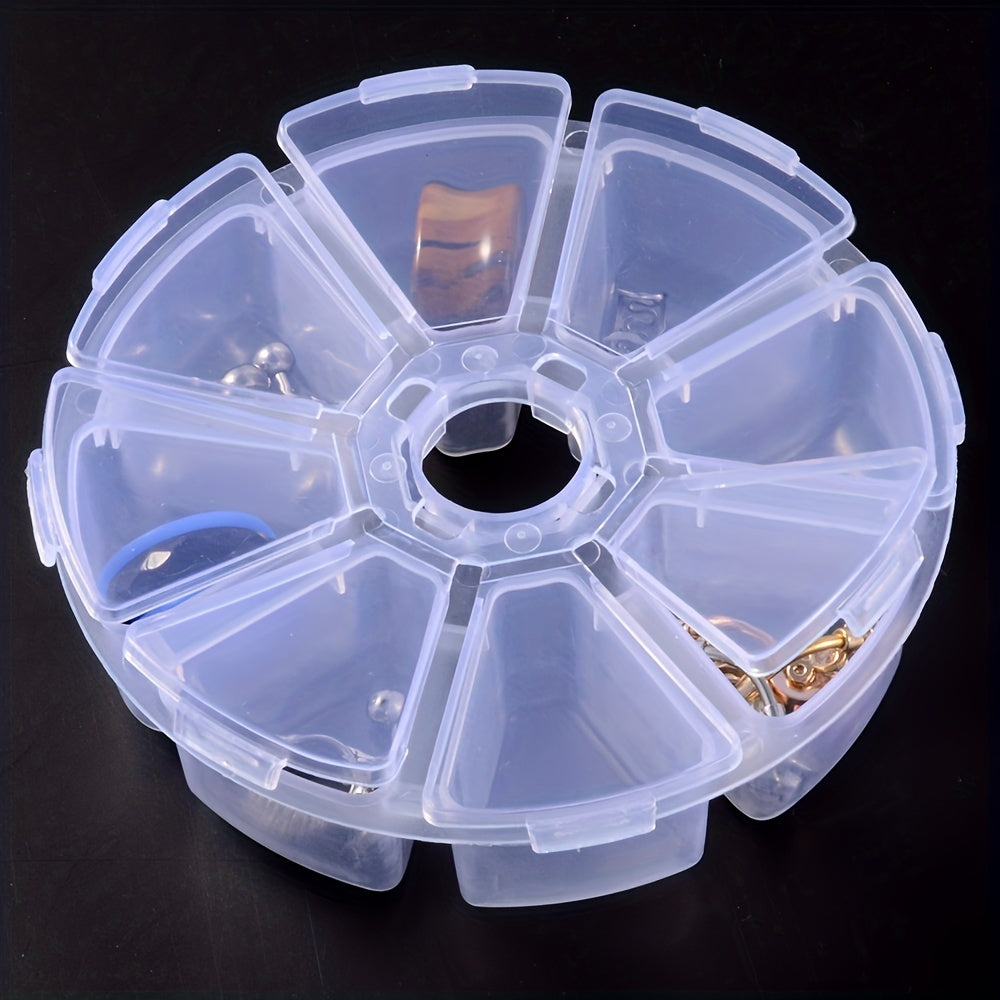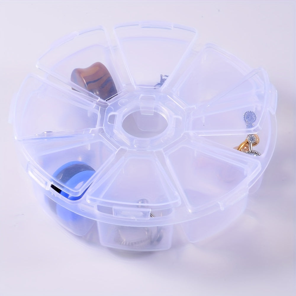 Keep your earrings organized with this transparent plastic storage box. It has 8 slots for easy storage and access to your jewelry. Ideal for beads and small accessories too.