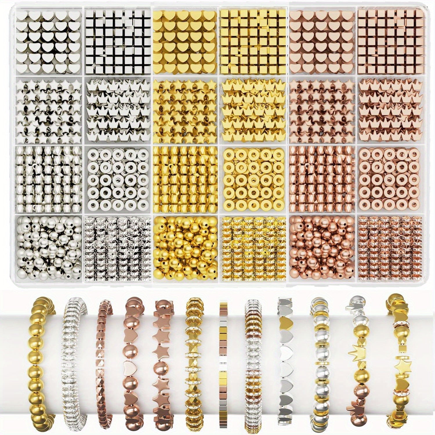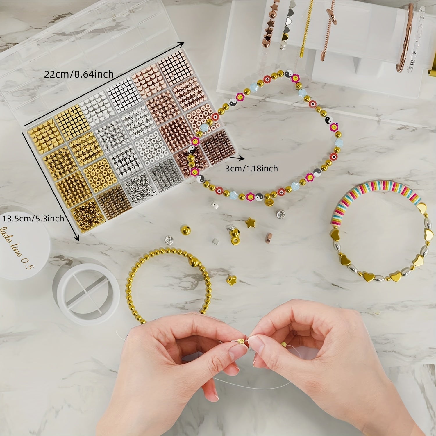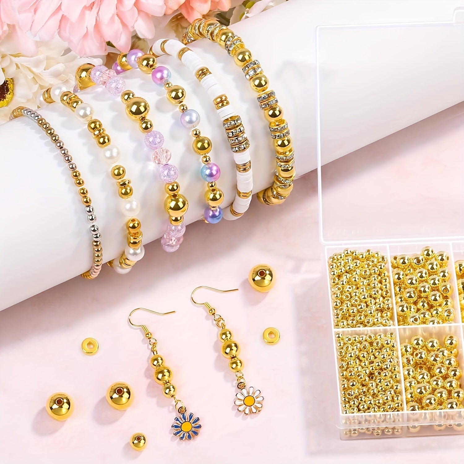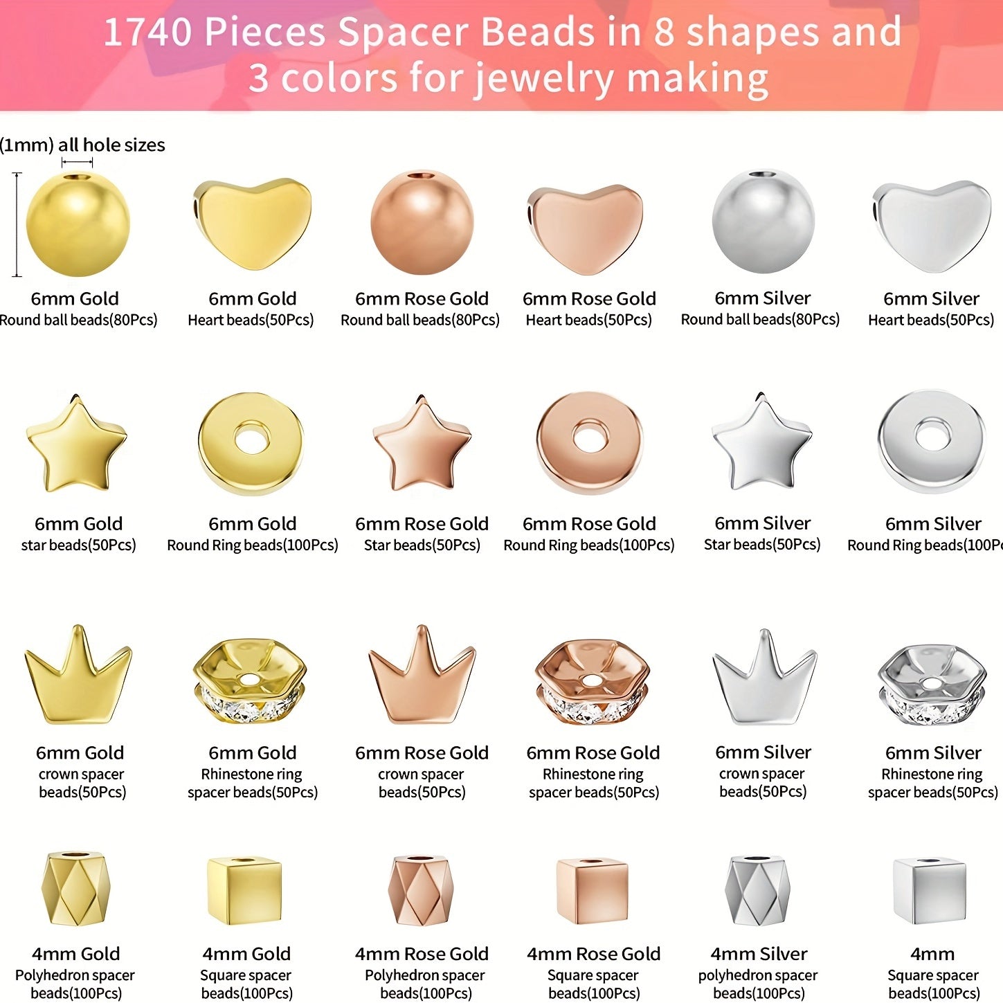 Get creative with this set of 1740 golden beads in 8 styles for making stunning jewelry bracelets, earrings, and necklaces.