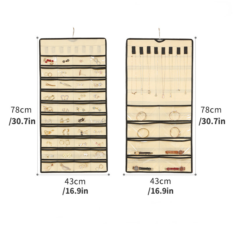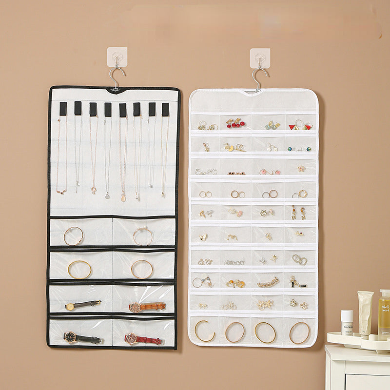 80 Grids Jewelry Storage Hanging Bag Double-sided Necklace Holder