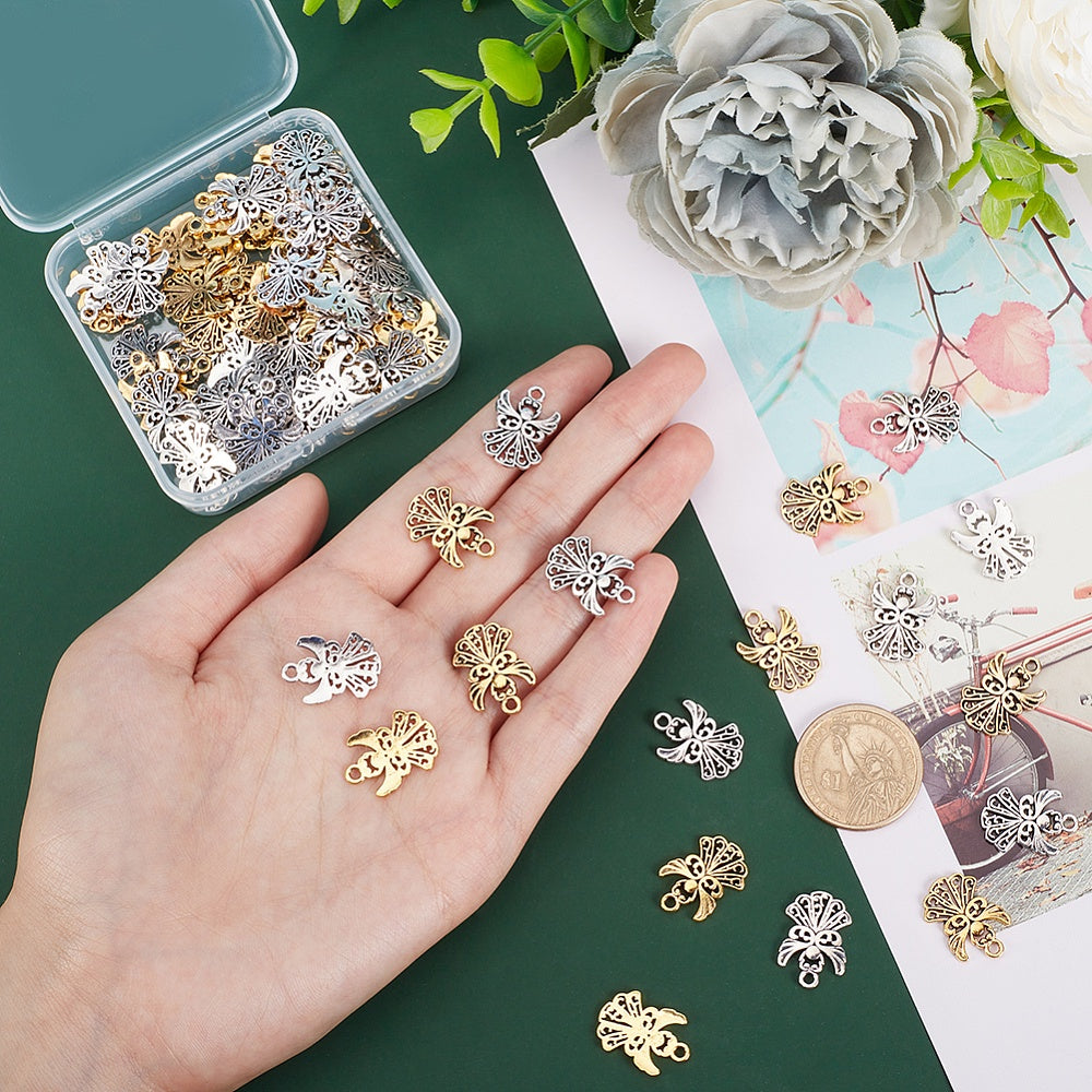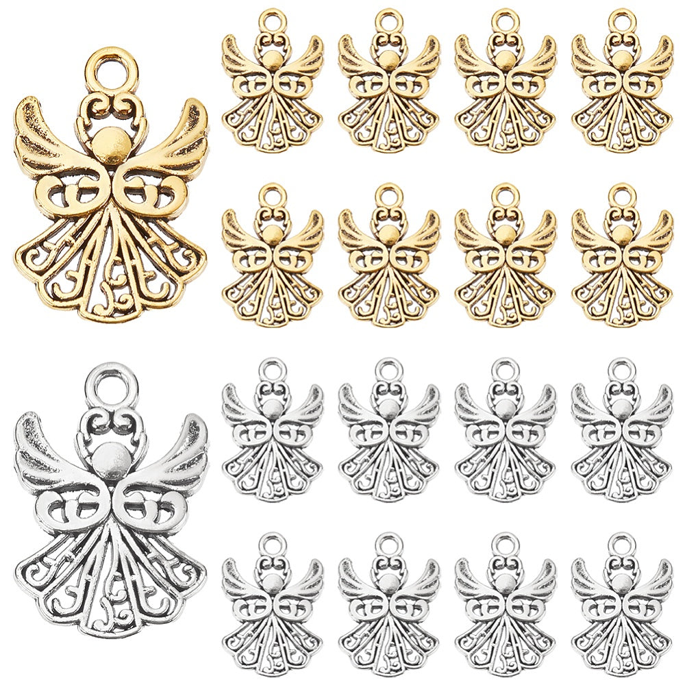 Create beautiful bracelets and necklaces with this set of 80 golden and silvery angel alloy pendants spacer beads. Perfect for DIY craft projects.