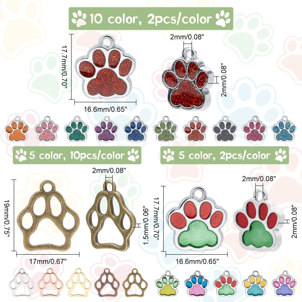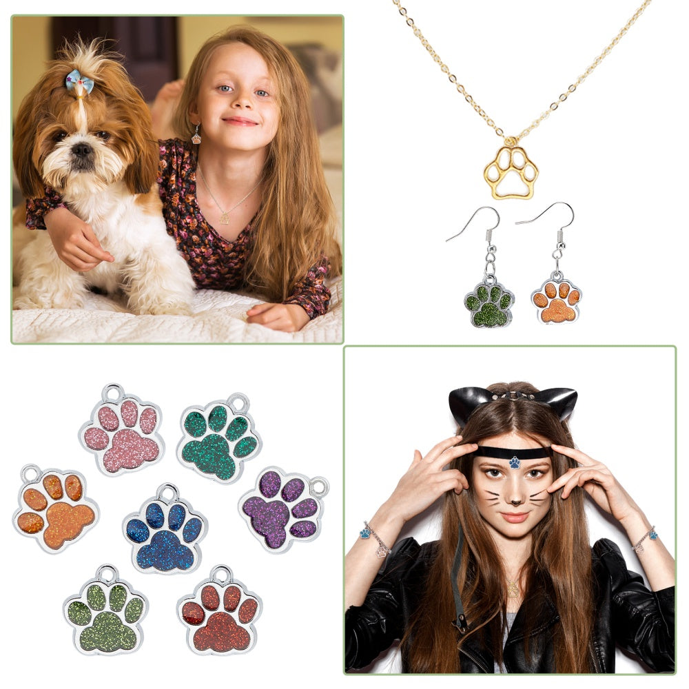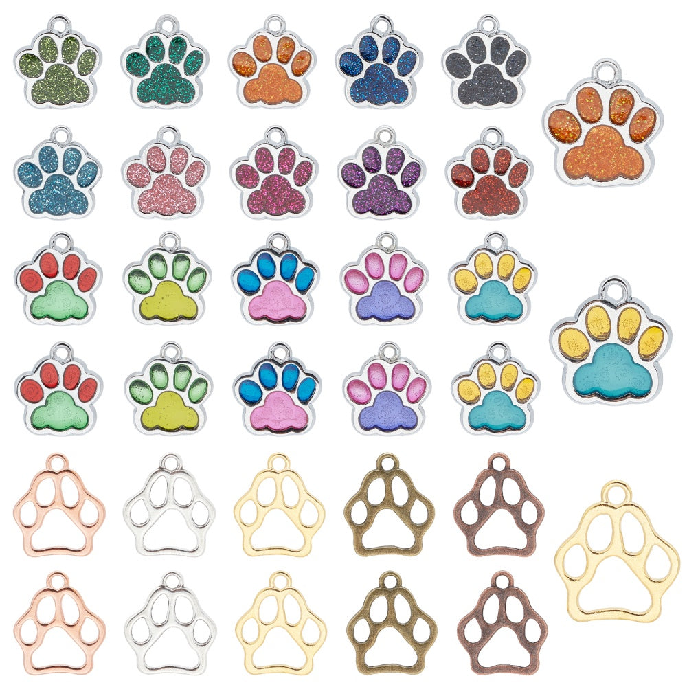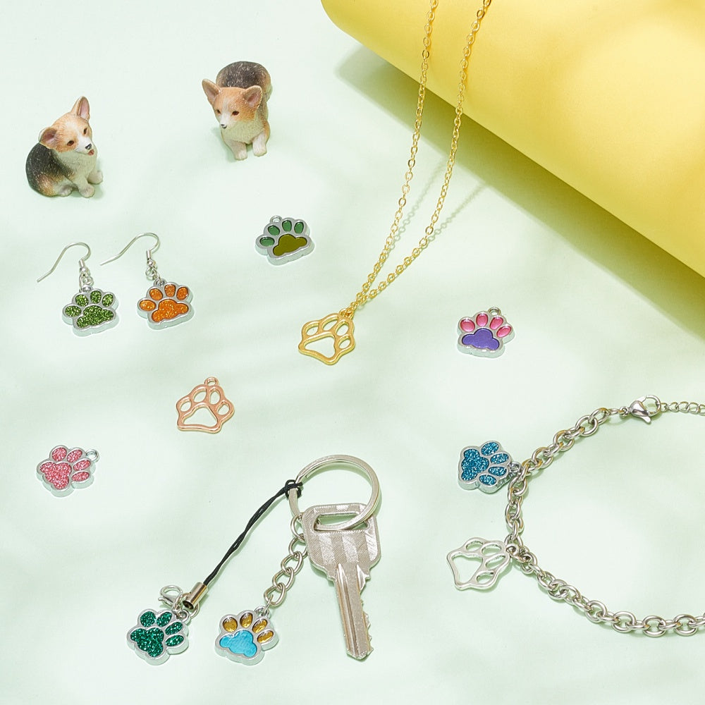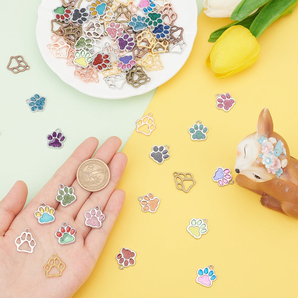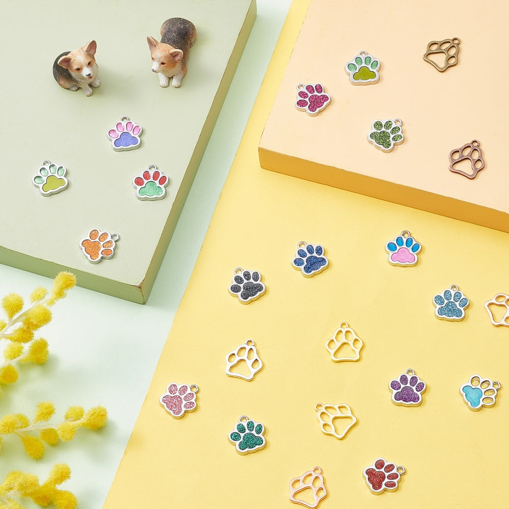 Get a pack of 80 animal paw print charms in 20 different glittery enamel styles. Perfect for DIY bracelets and crafts.