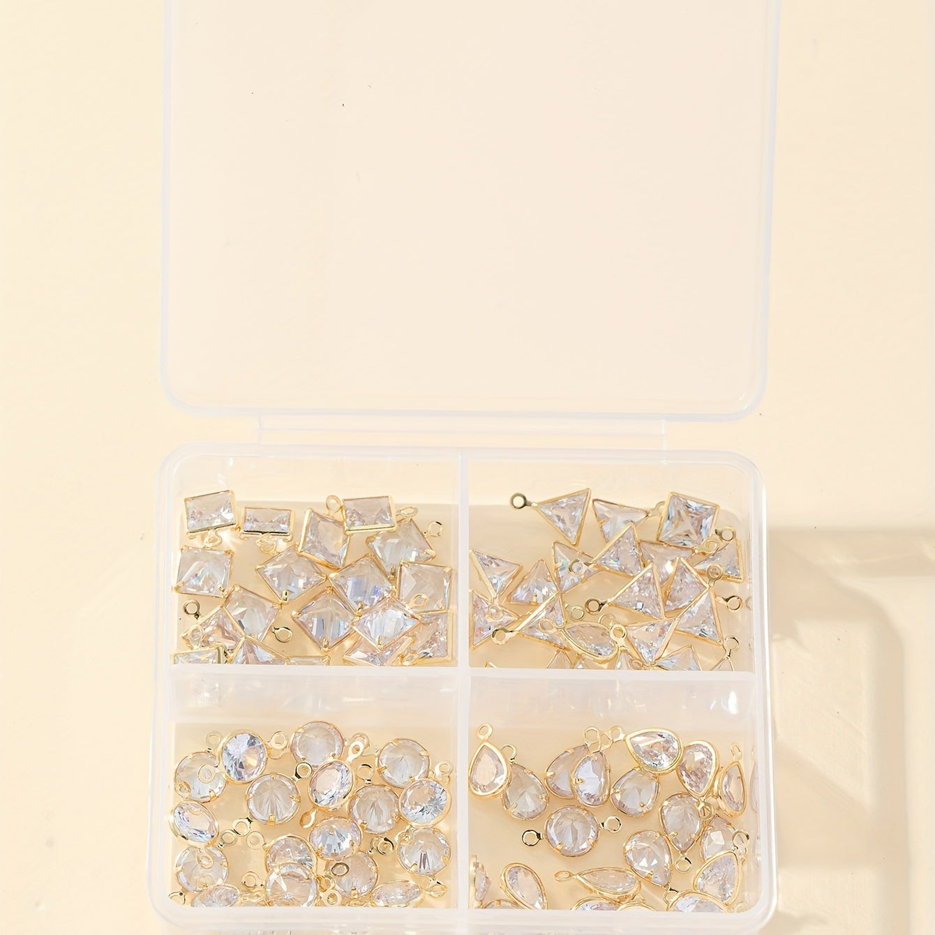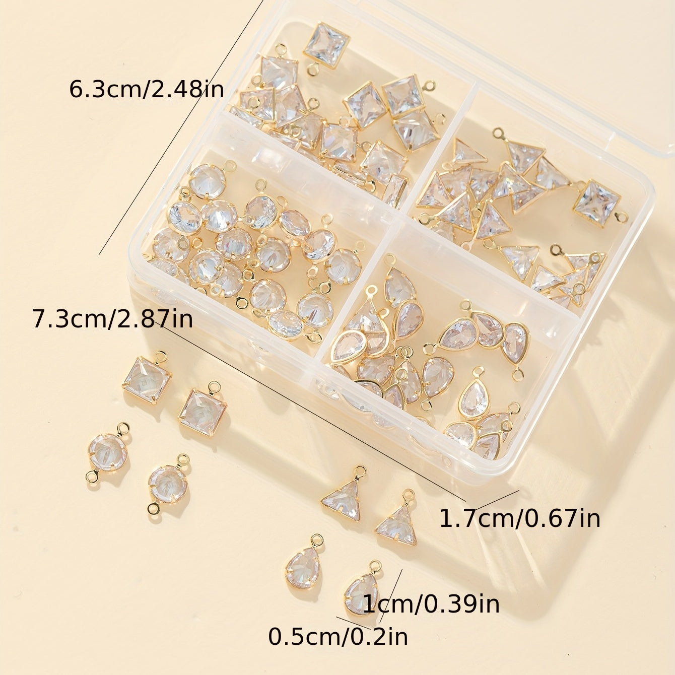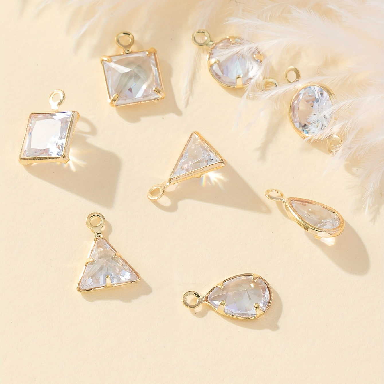 This set includes 80 electroplated metal pendants with bright zircon stones in multiple shapes. Ideal for jewelry making, dotting, and ear jewelry. Enhance your accessories with these beautiful pieces.