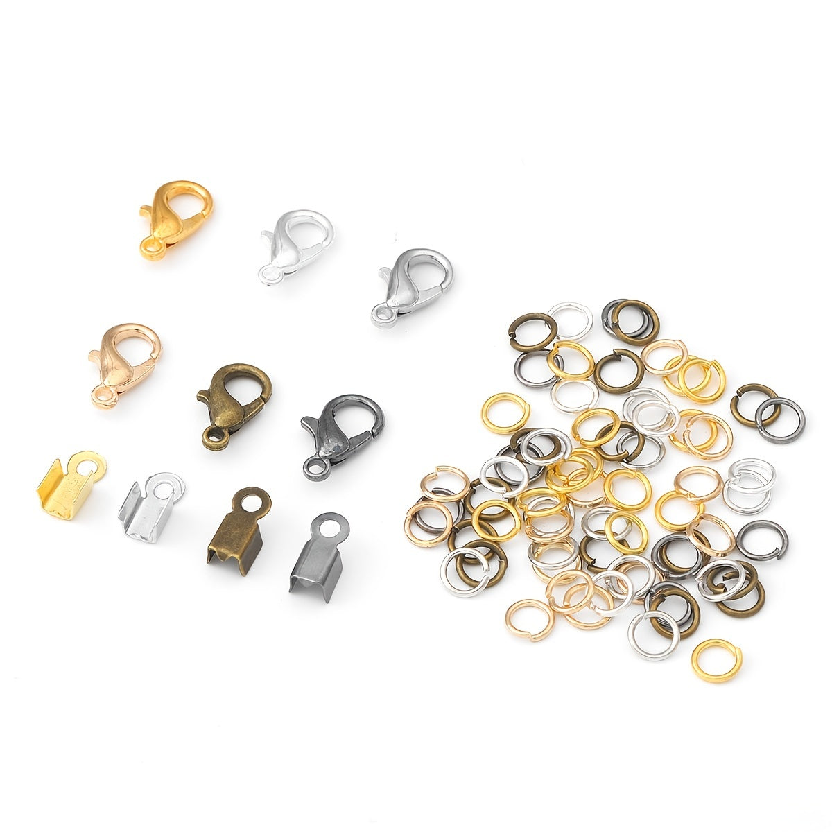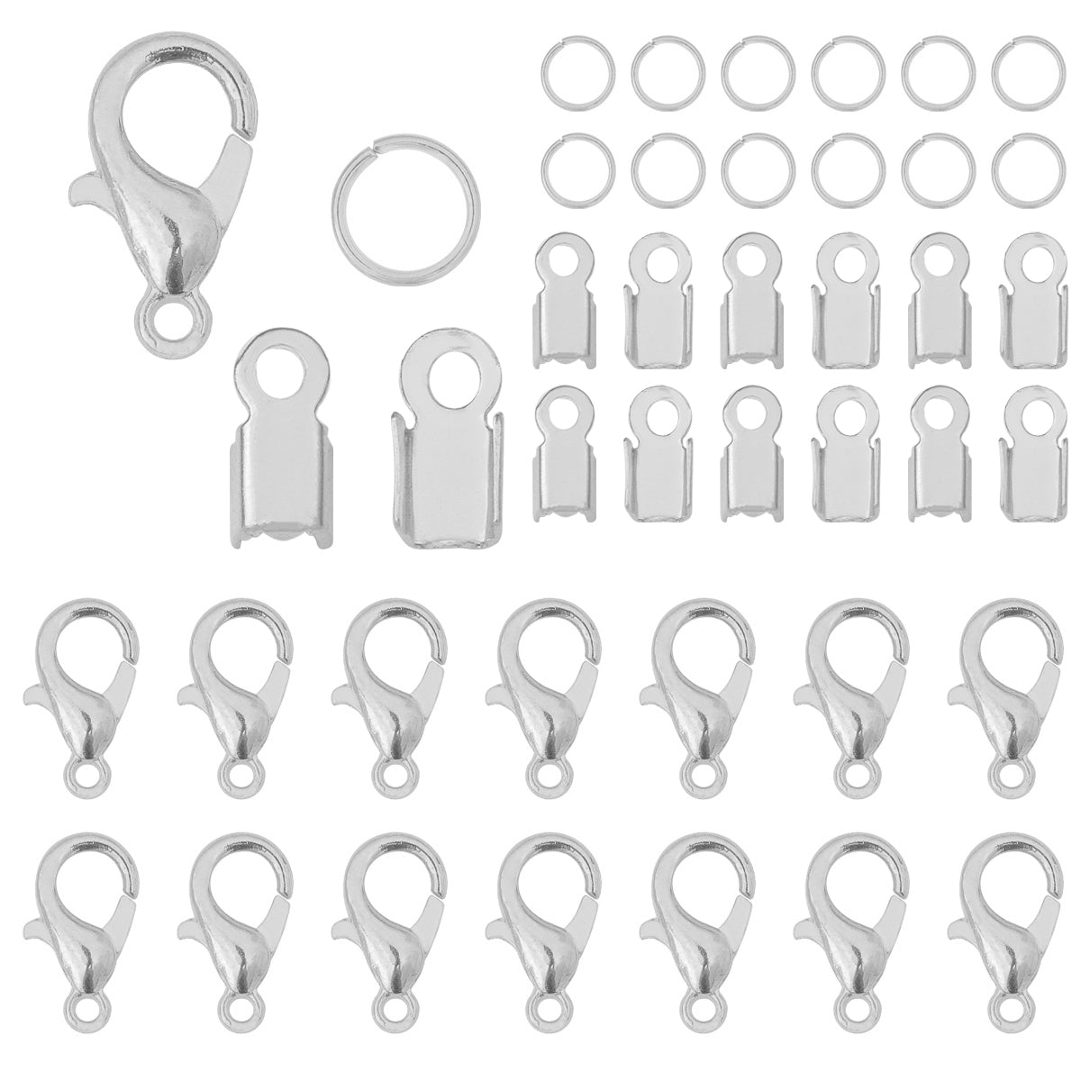 Get an 80-piece pack of lobster buckles with single ring clip for your jewelry DIY projects. These accessories are versatile and perfect for crafting unique jewelry pieces.