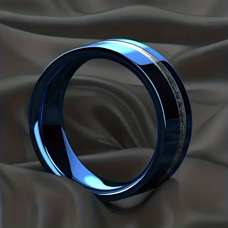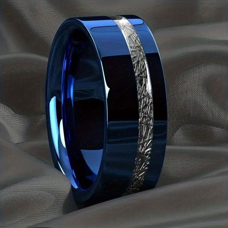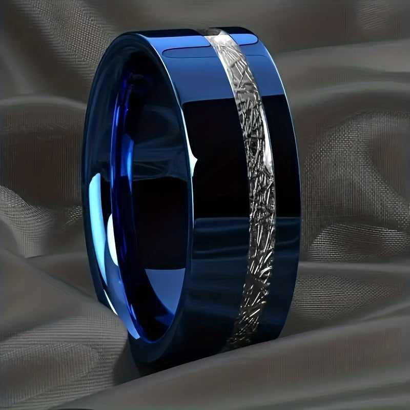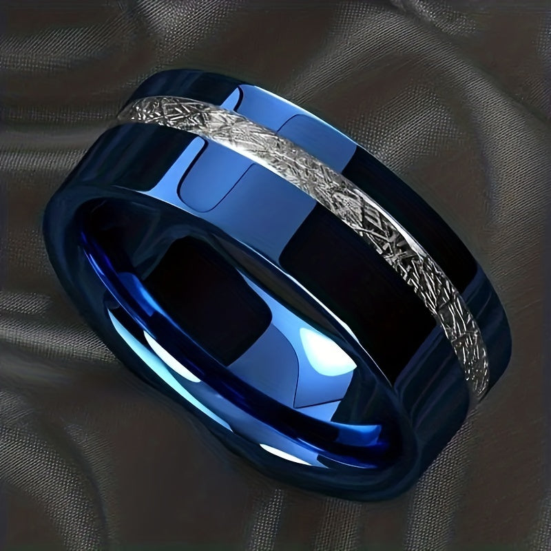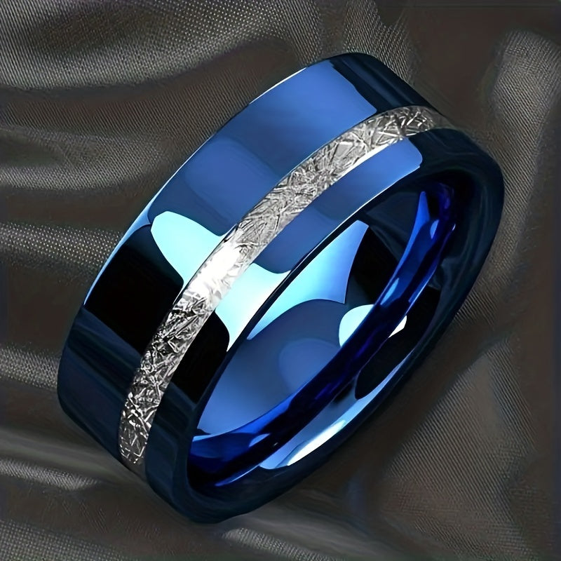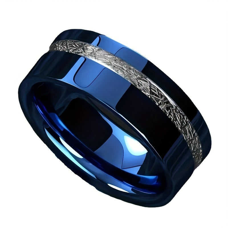 This stylish ring is perfect for engagement, wedding, birthday party or as a gift. Made of stainless steel with a grooved design and silvery flake accents.