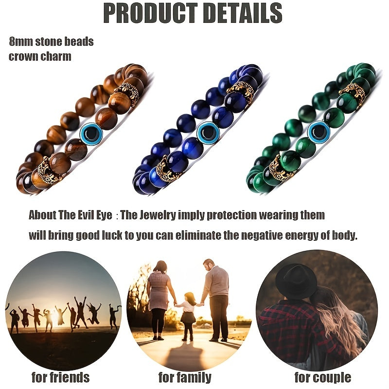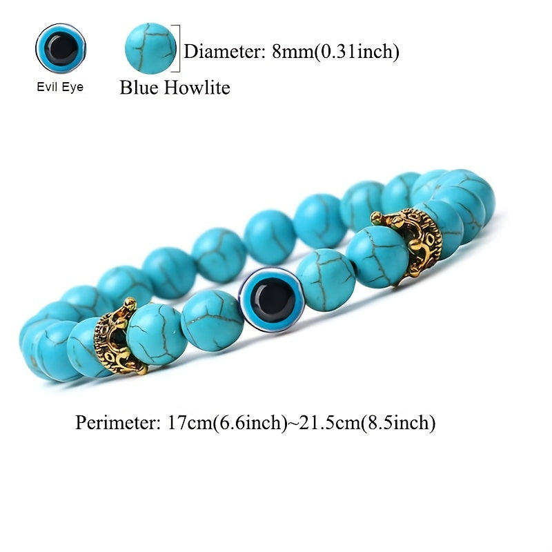 This bracelet features 8mm natural stone beads with an evil eye charm. Perfect for teen girls and boys.