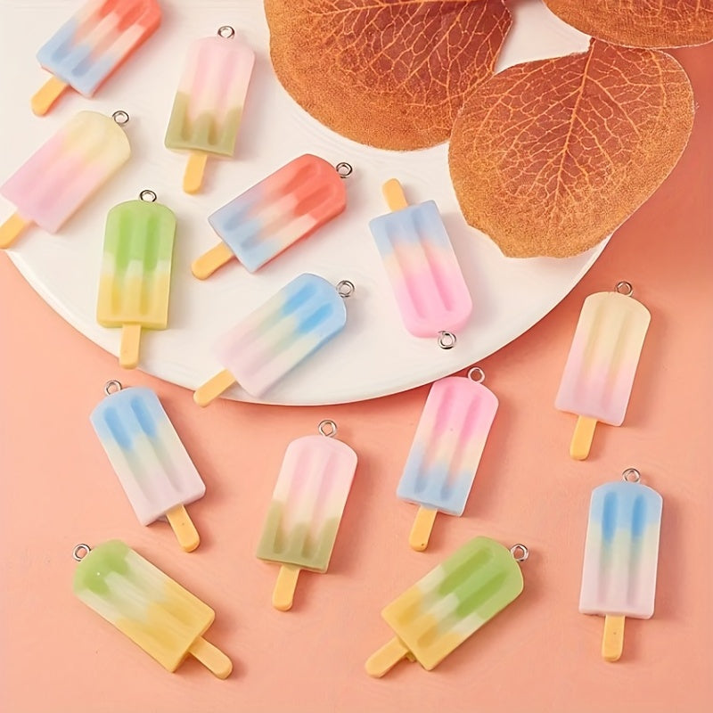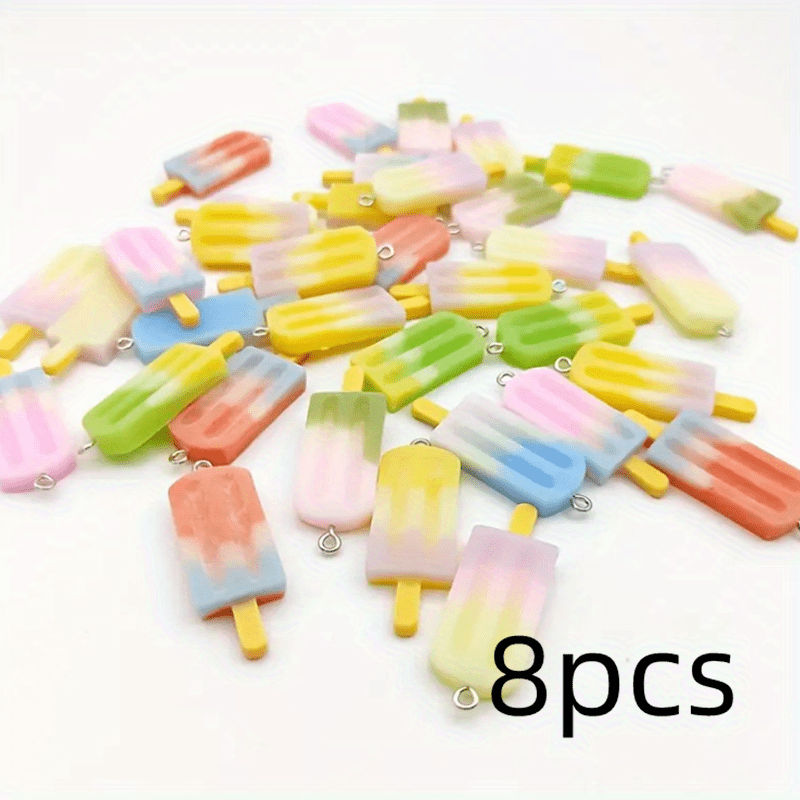 These 8 colorful popsicle resin pendants are perfect for creating DIY earrings, bracelets, necklaces, and other accessories. Each pendant has a unique and vibrant design.