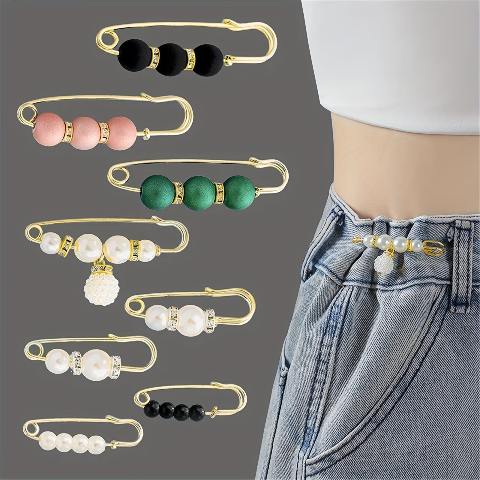 Enhance your fashion with these stylish faux pearl waist tightener buckles designed for women's clothing. Perfect for cardigan, sweater, shawl, scarf clip, and collar safety pin.