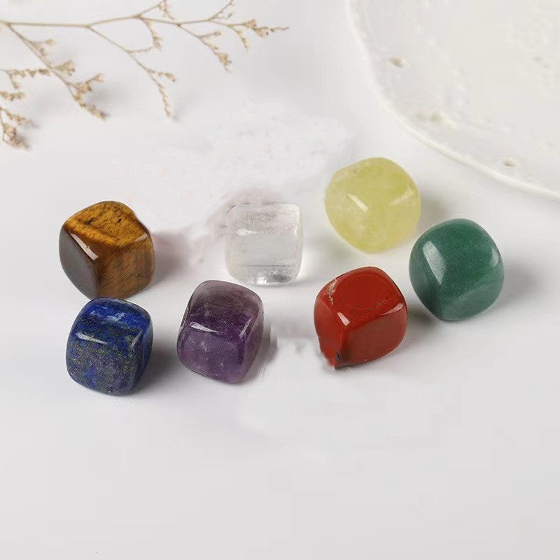 Enhance your spiritual energy with this set of 8 natural chakra cubes. Perfect for meditation, Reiki, and healing anxiety.