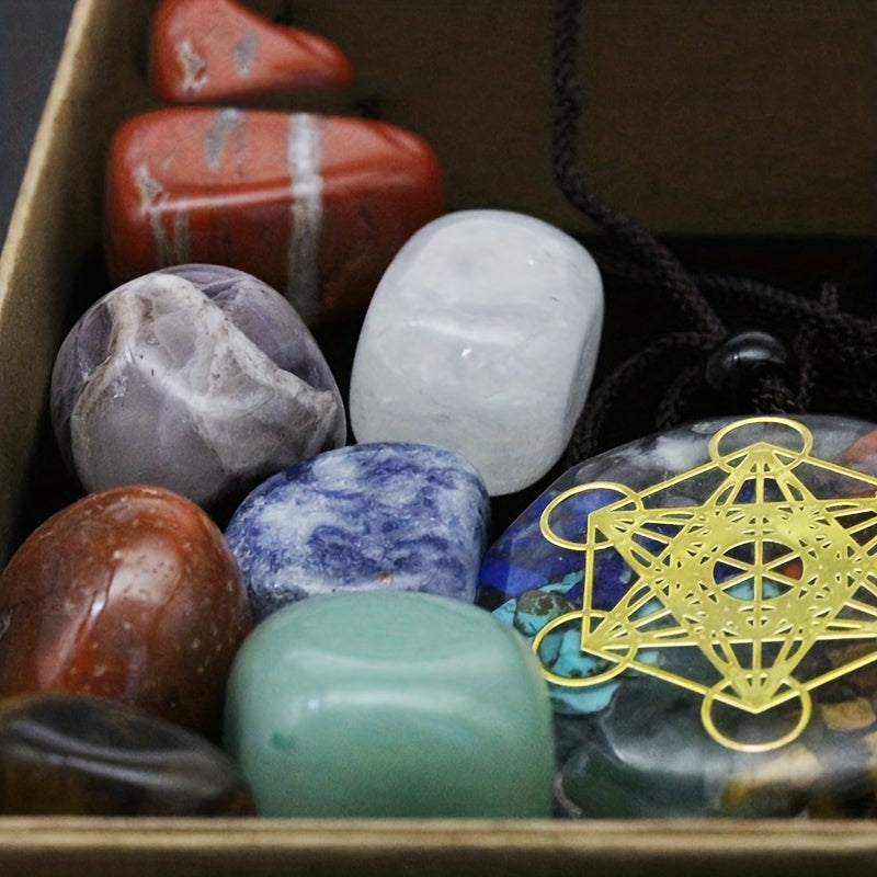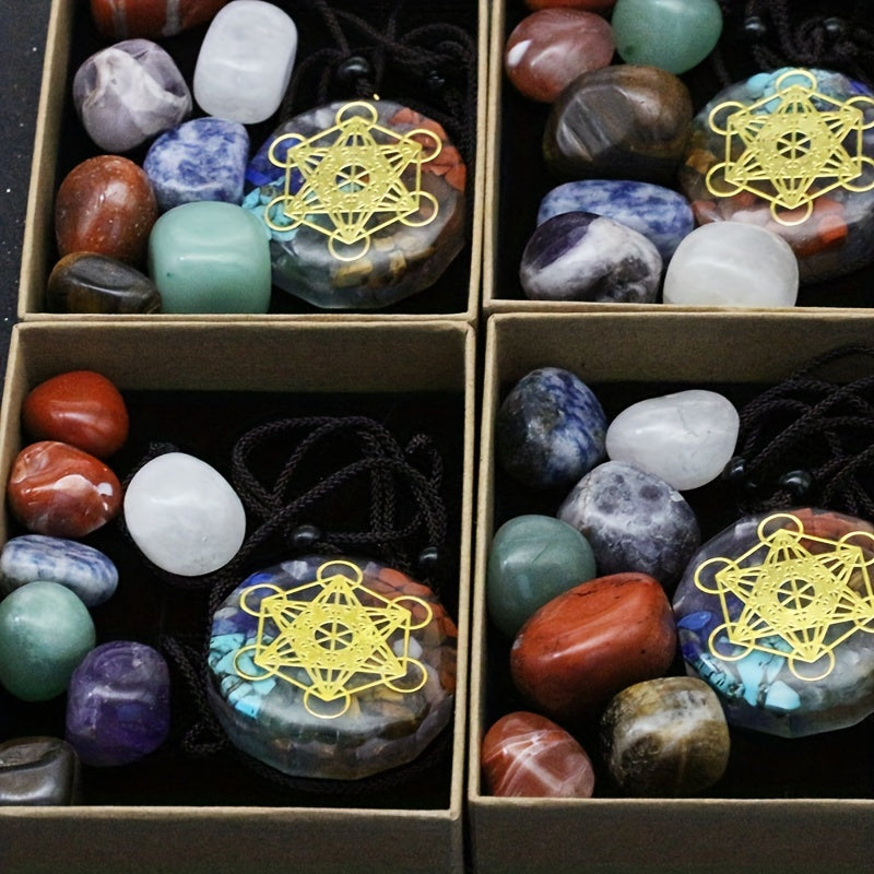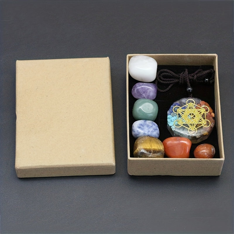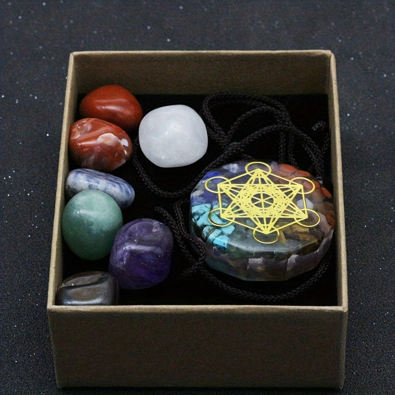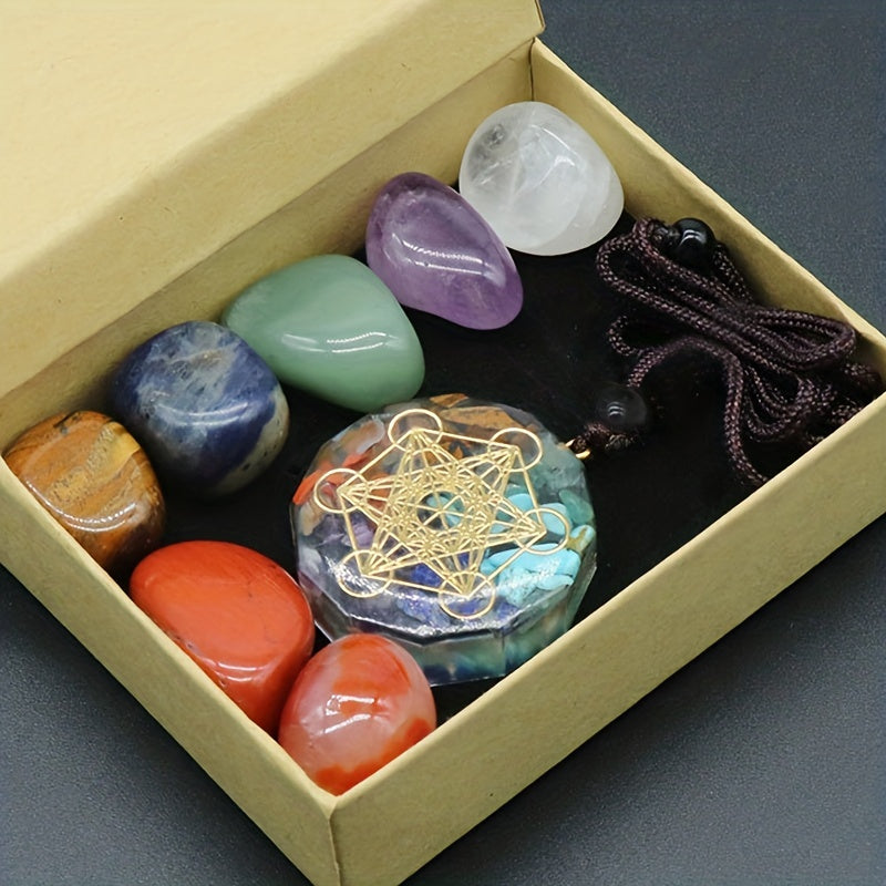 8pcs Natural Stone Yoga Stone Resin Colorful Stone Pendant Necklace Set