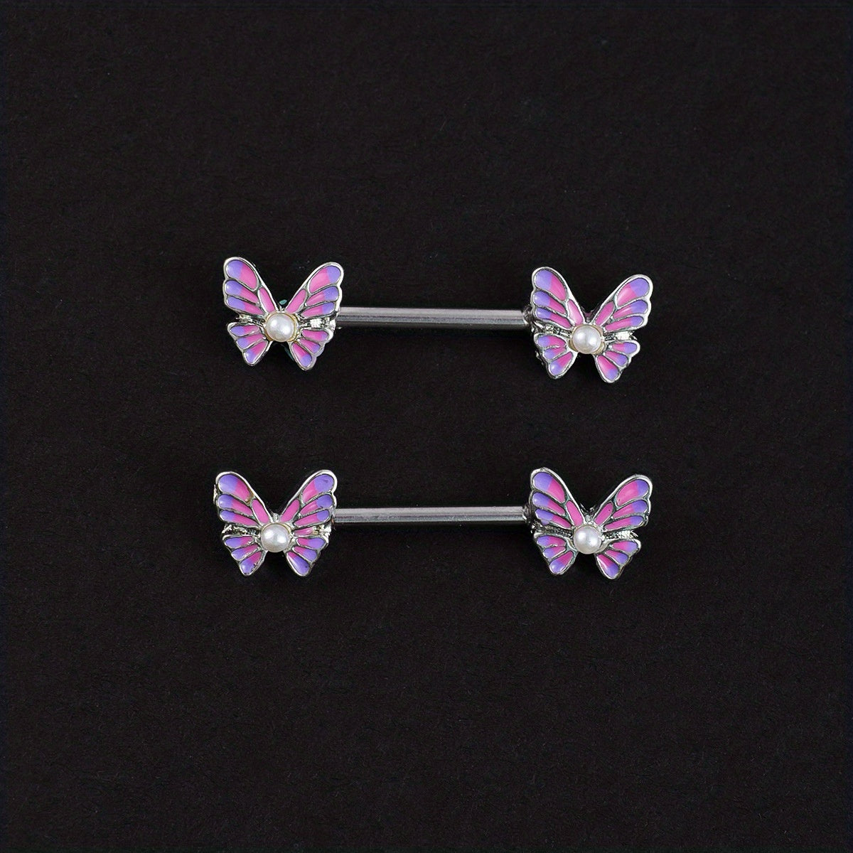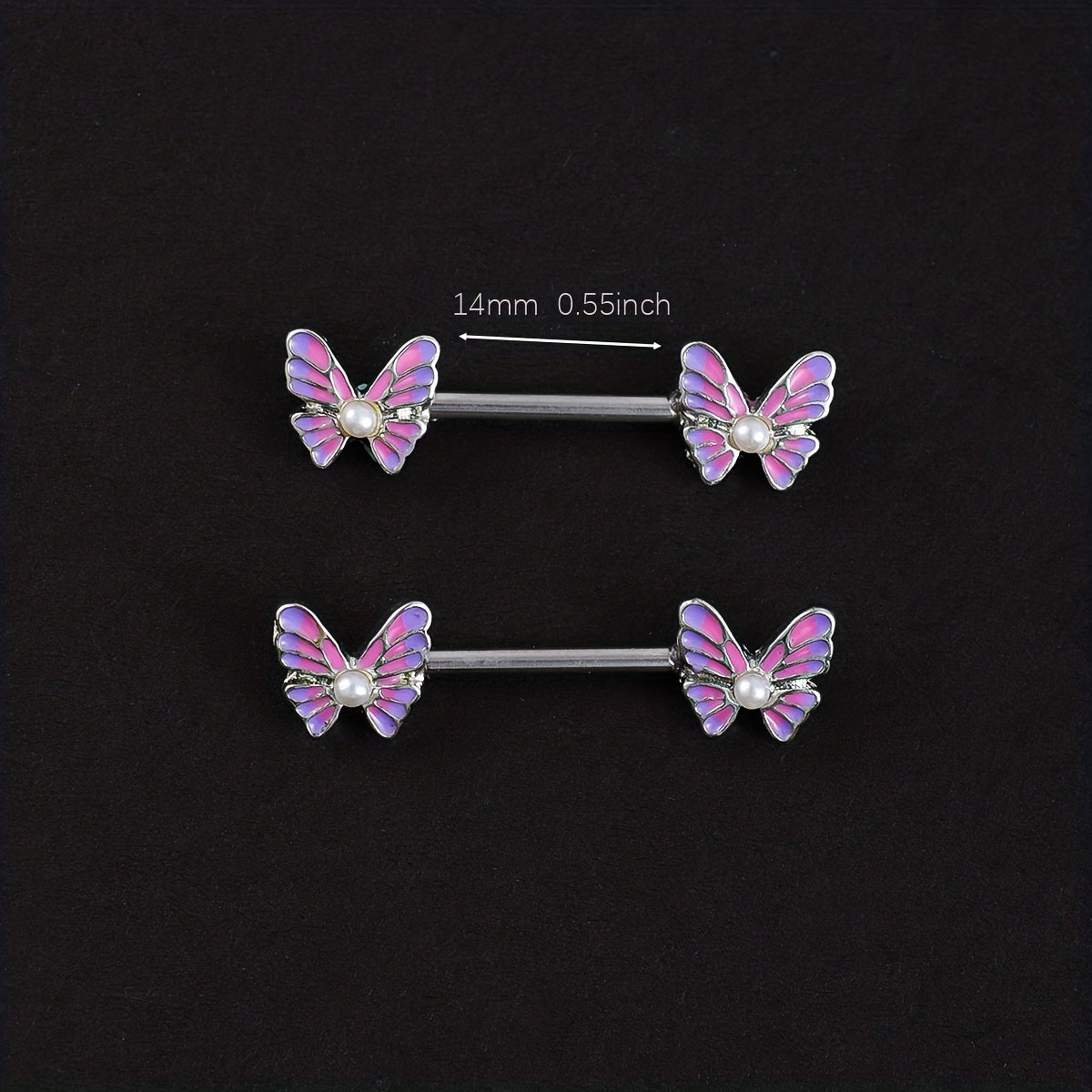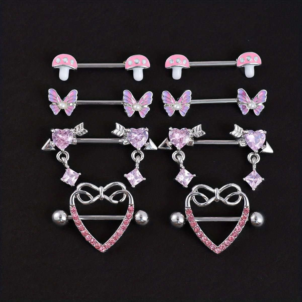 This set includes 8 nipple rings in butterfly and heart shapes with pink zircon. Made of high-quality materials, perfect for body piercing.