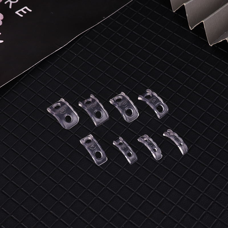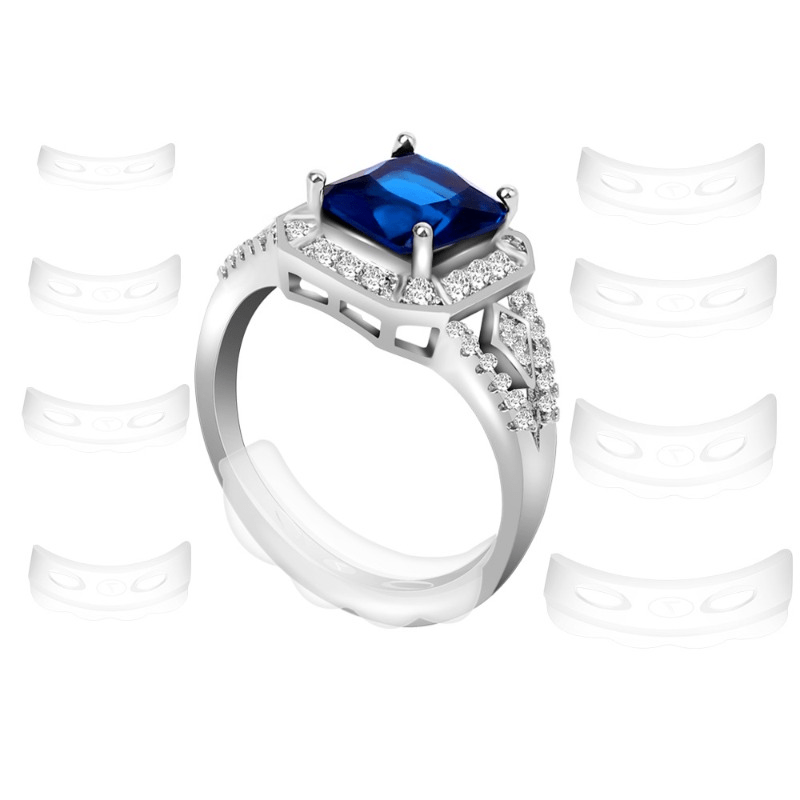 Keep your loose rings secure with this set of 8 clear plastic ring size adjusters. The minimalist design blends seamlessly with any ring style.
