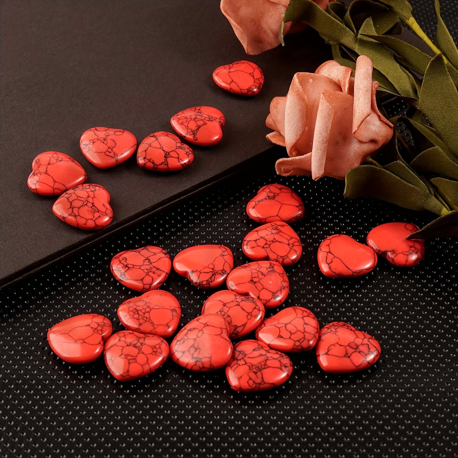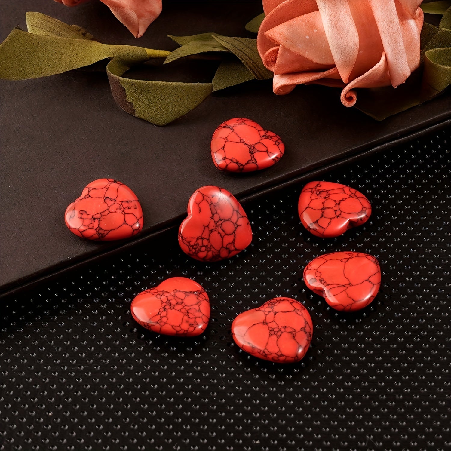 This set includes 8 pieces of red heart-shaped natural stones made from quartz. Perfect for healing, reiki, ornaments, decor, crafts, and gifts.