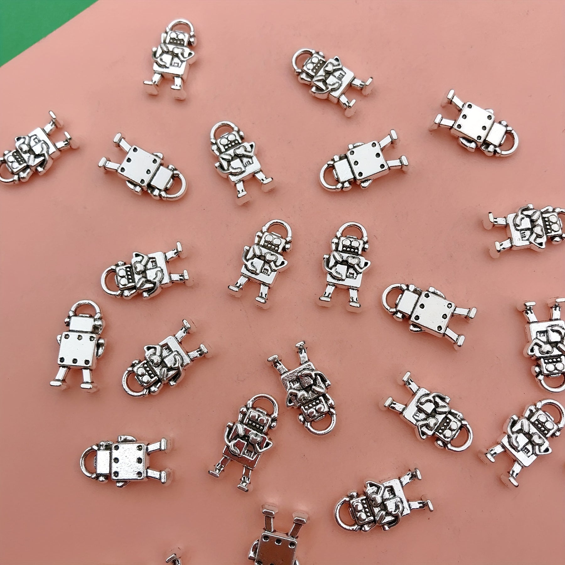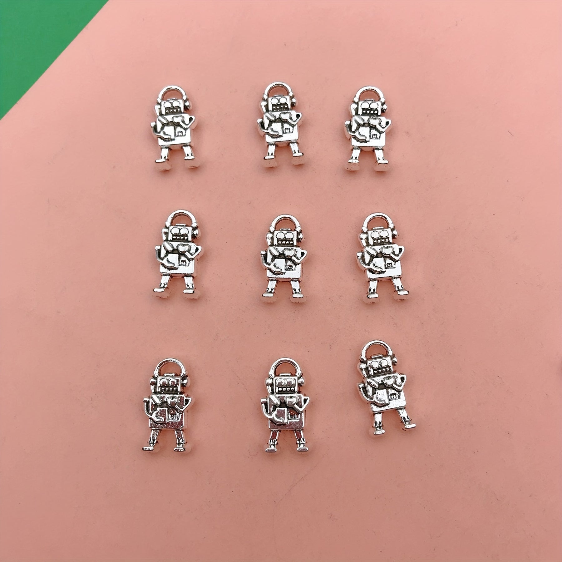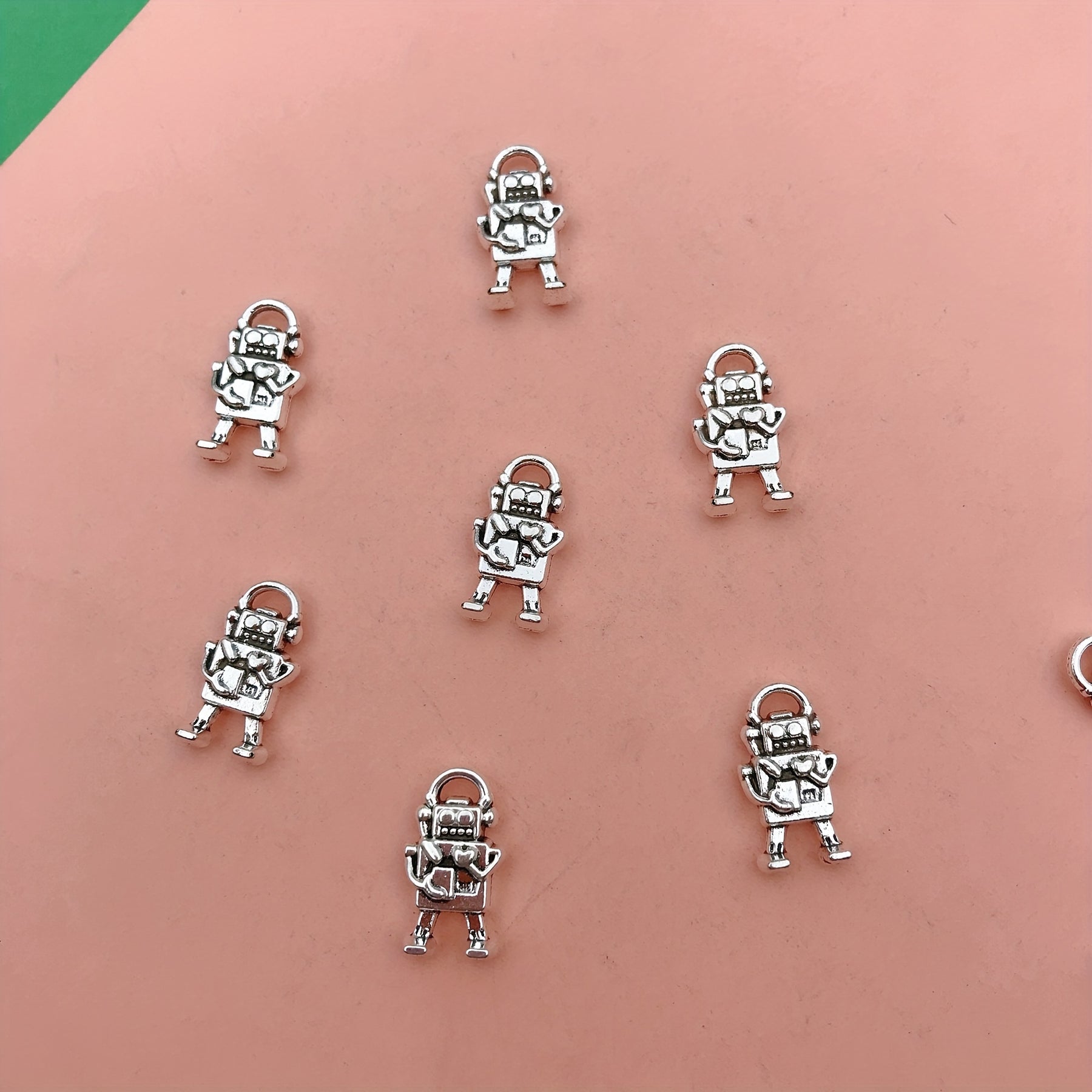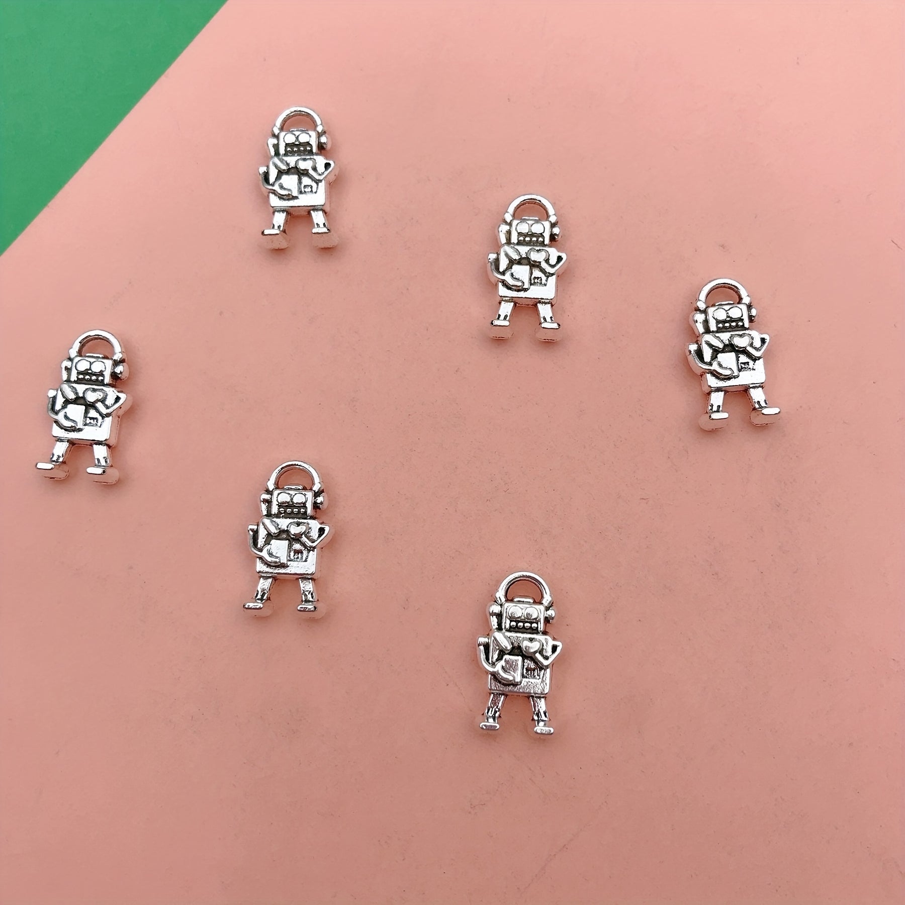 Enhance your DIY projects with these 8 robot pendants charms. Perfect for earrings, bracelets, anklets, and necklaces.