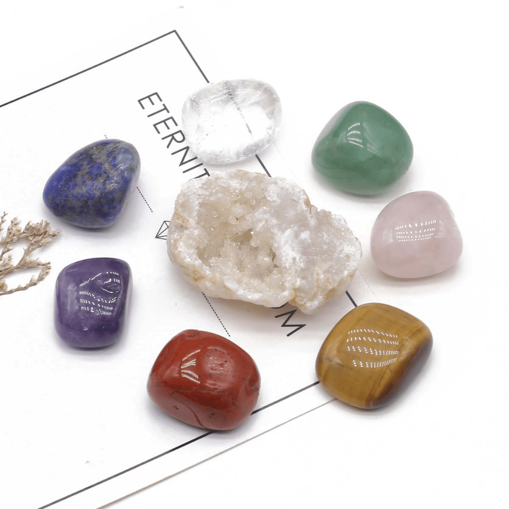 Enhance your spiritual practice with this 8-piece set of natural amethyst tumbling stones. Perfect for crystal therapy, yoga, energy work, or as a beautiful addition to your mineral collection.