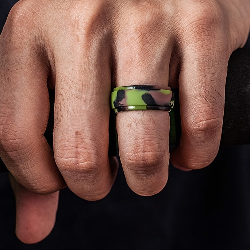 This set includes 8 silicone wedding rings for men. Perfect for active lifestyles, these rubber bands are durable, comfortable, and safe.