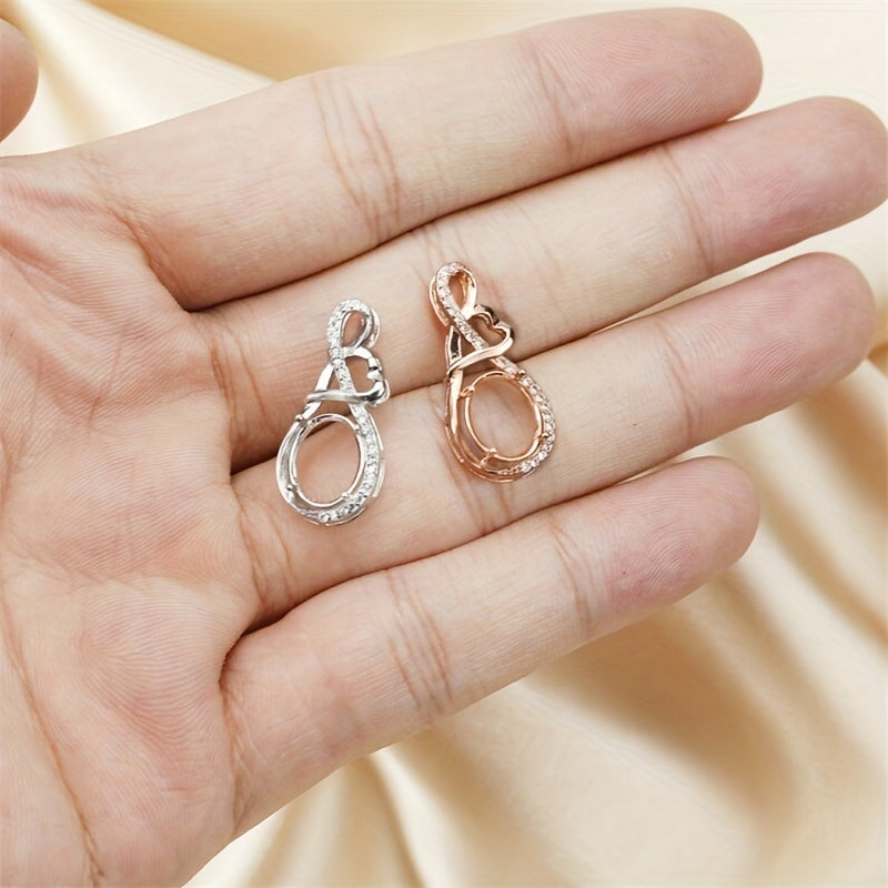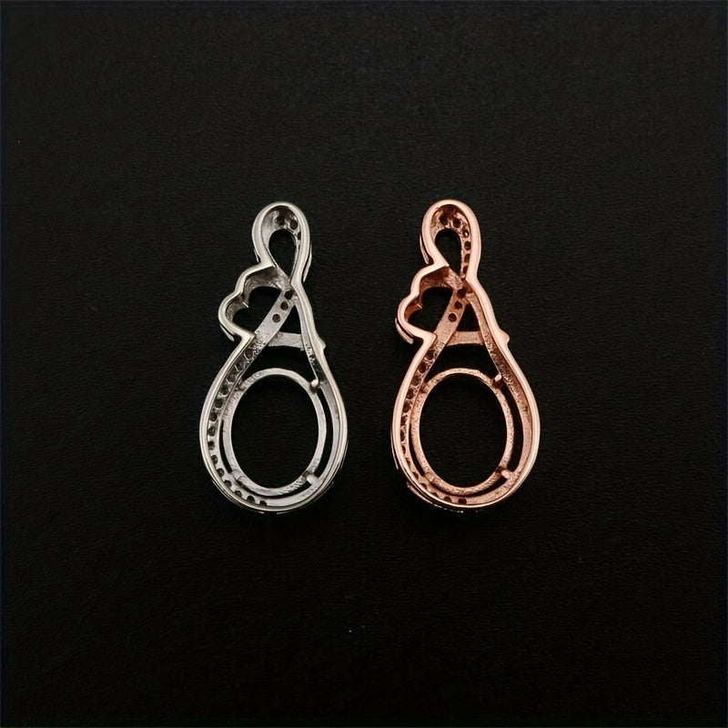This pendant setting features a love decor design and is made of high-quality 925 sterling silver with a rose golden charm bezel. Perfect for DIY gemstone supplies.