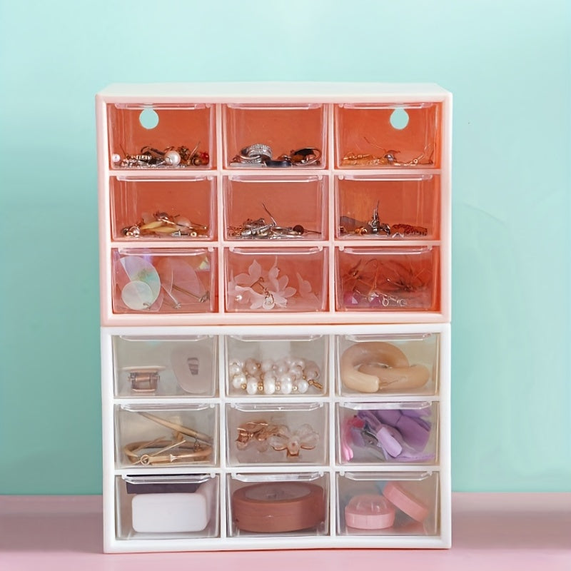 Keep your cosmetics and jewelry organized with this 9-drawer storage box. Perfect for dorms. Dust-proof design.