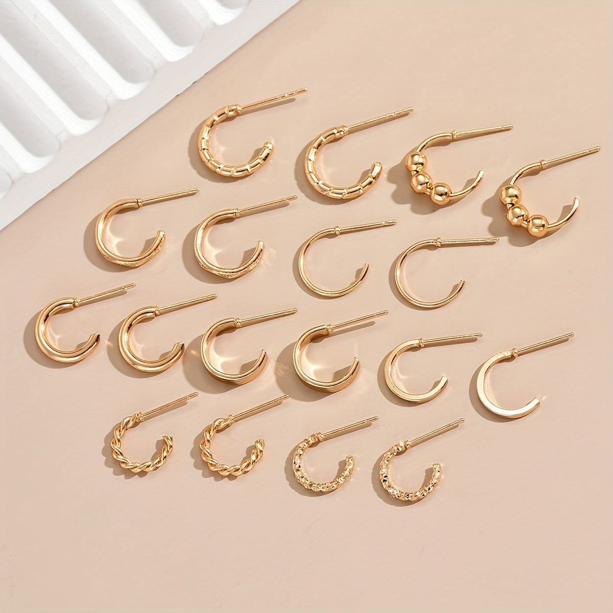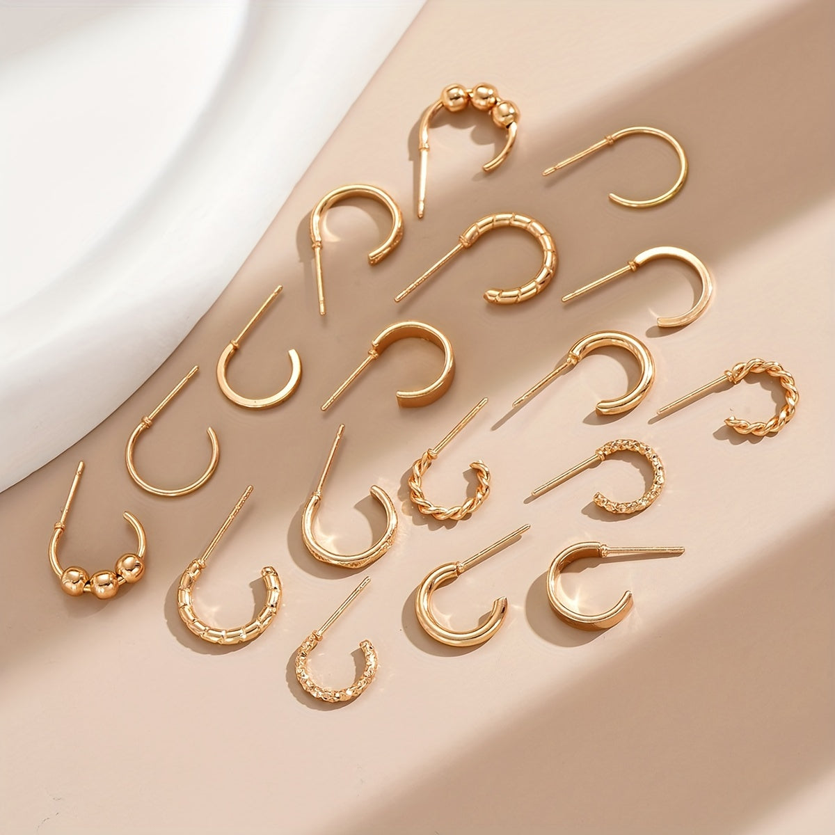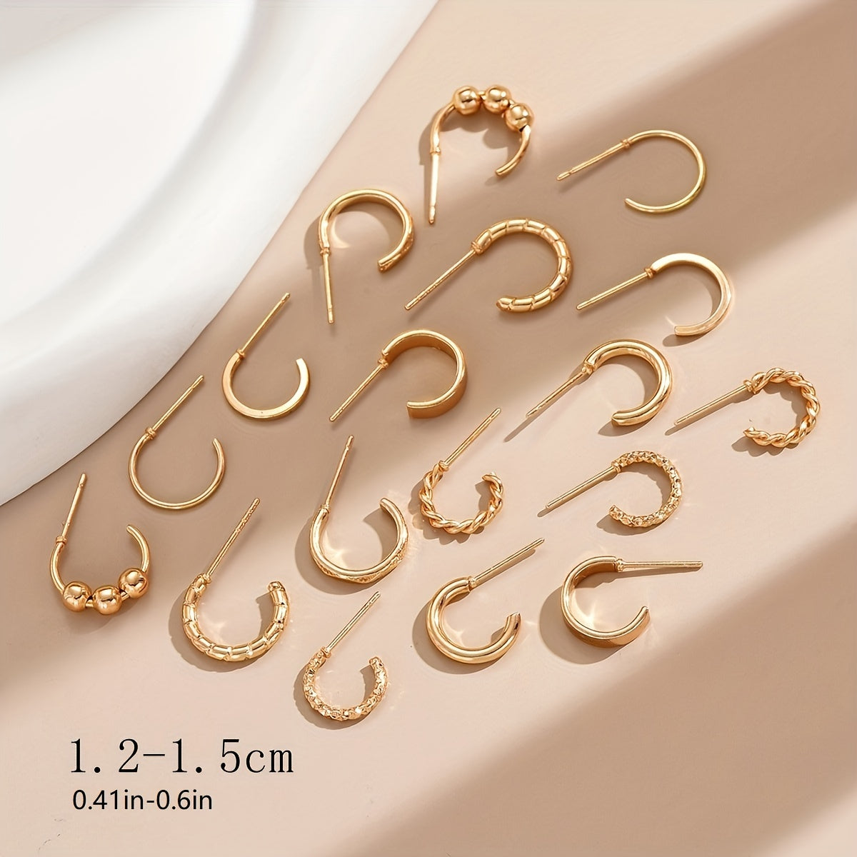Enhance your daily wear with this set of 9 pairs of golden hoop earrings. Made from high-quality alloy, these earrings are perfect for adding a touch of elegance to any outfit.