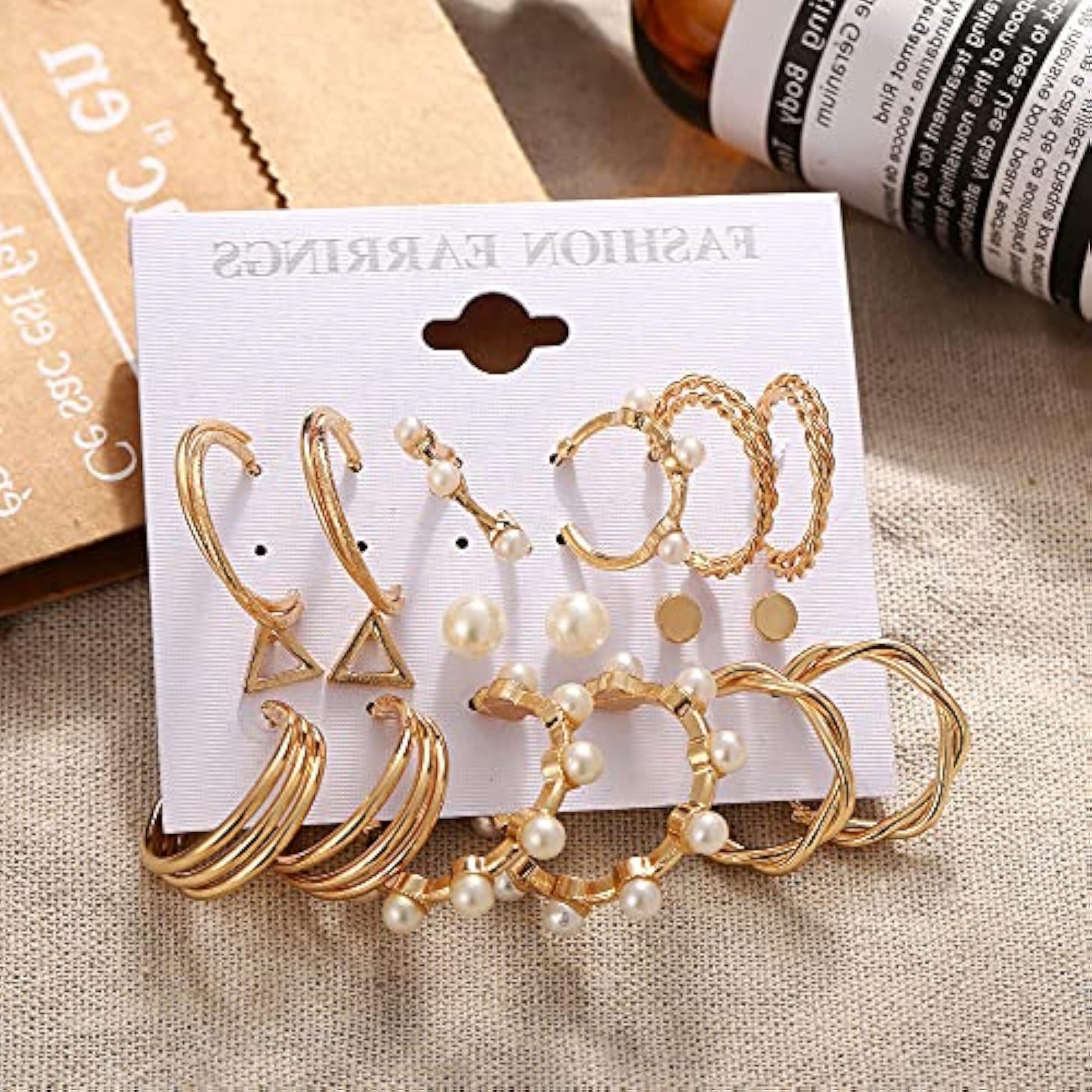 Upgrade your earring collection with this set of 9 stylish metal earrings. Perfect for adding a touch of glam to any outfit!