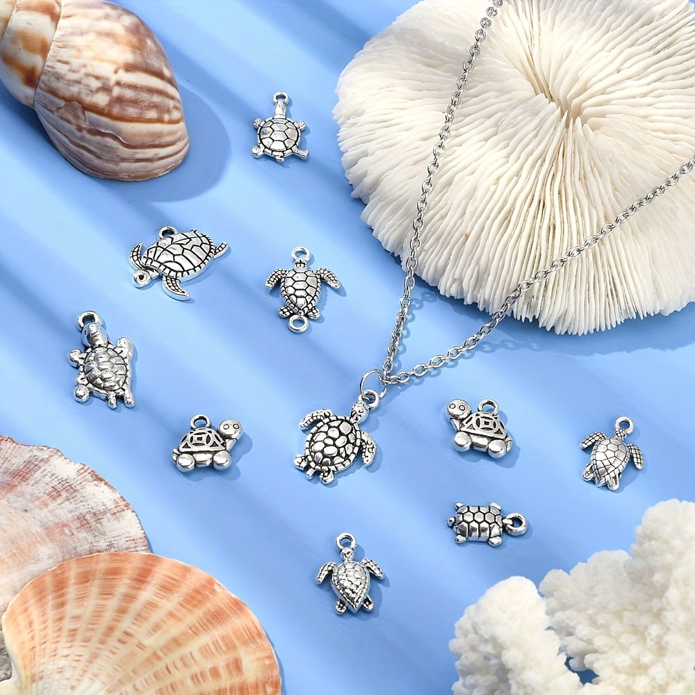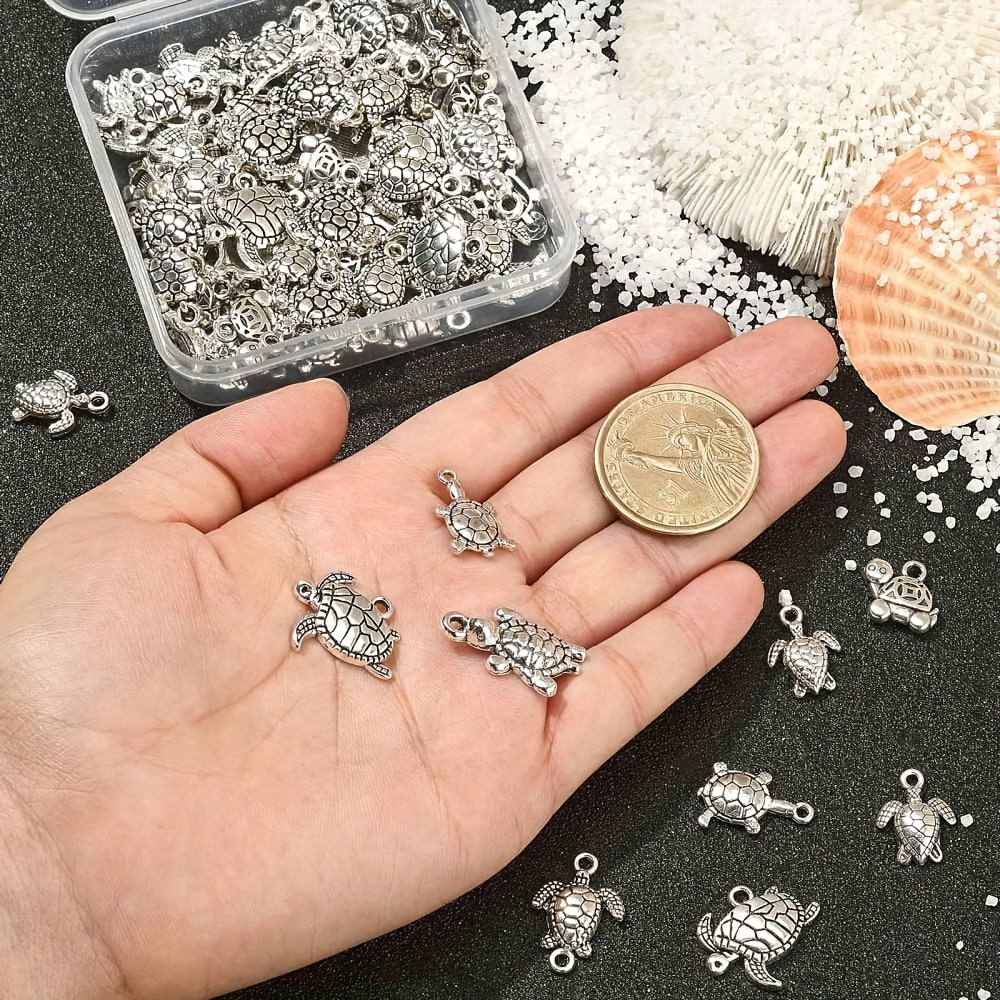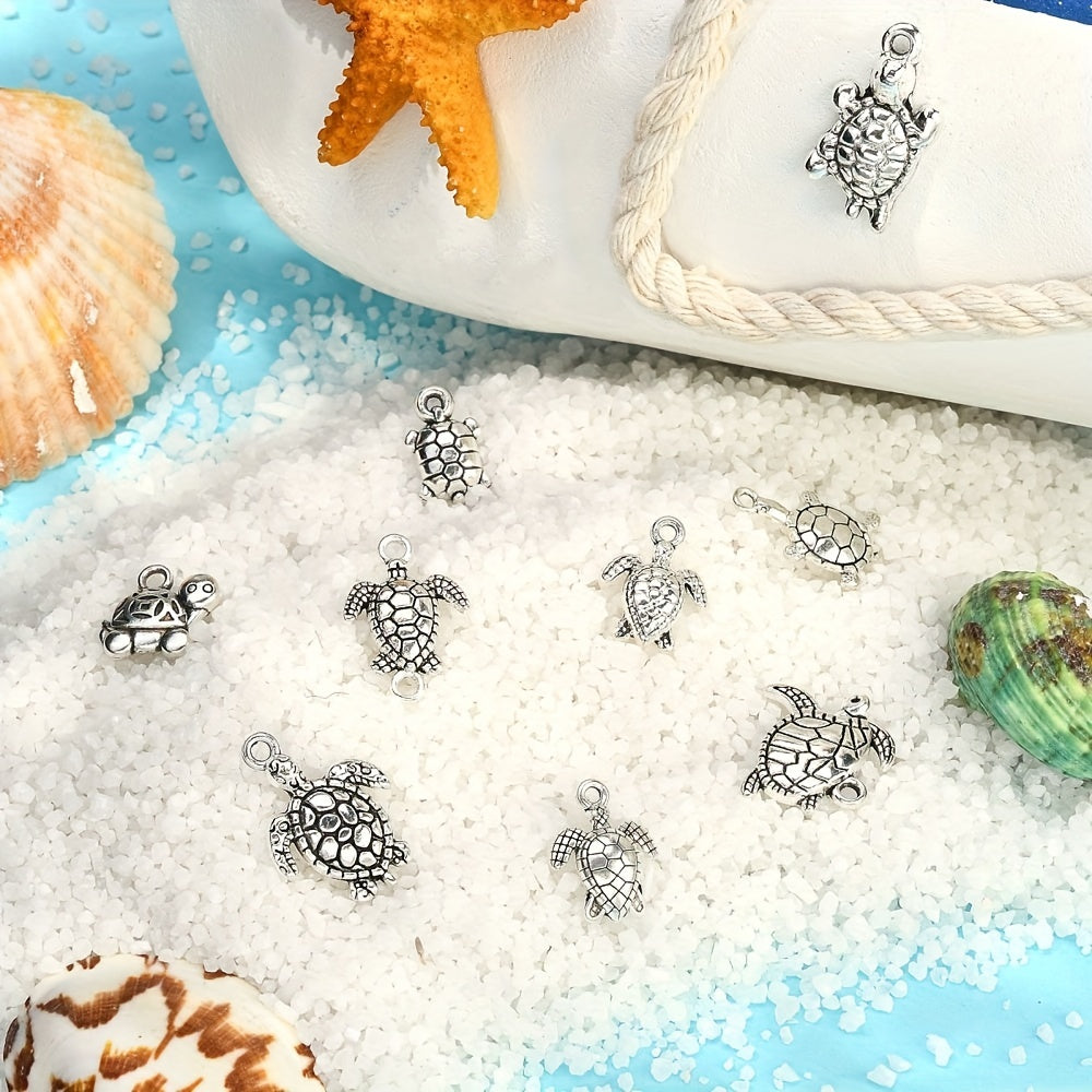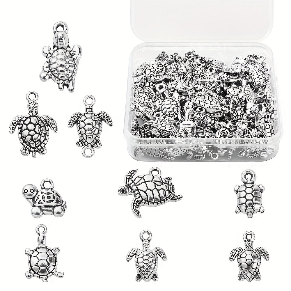 Collection of 90pcs turtle charms in 9 different styles, perfect for crafting bracelets, earrings, and necklaces. Made of high-quality alloy.