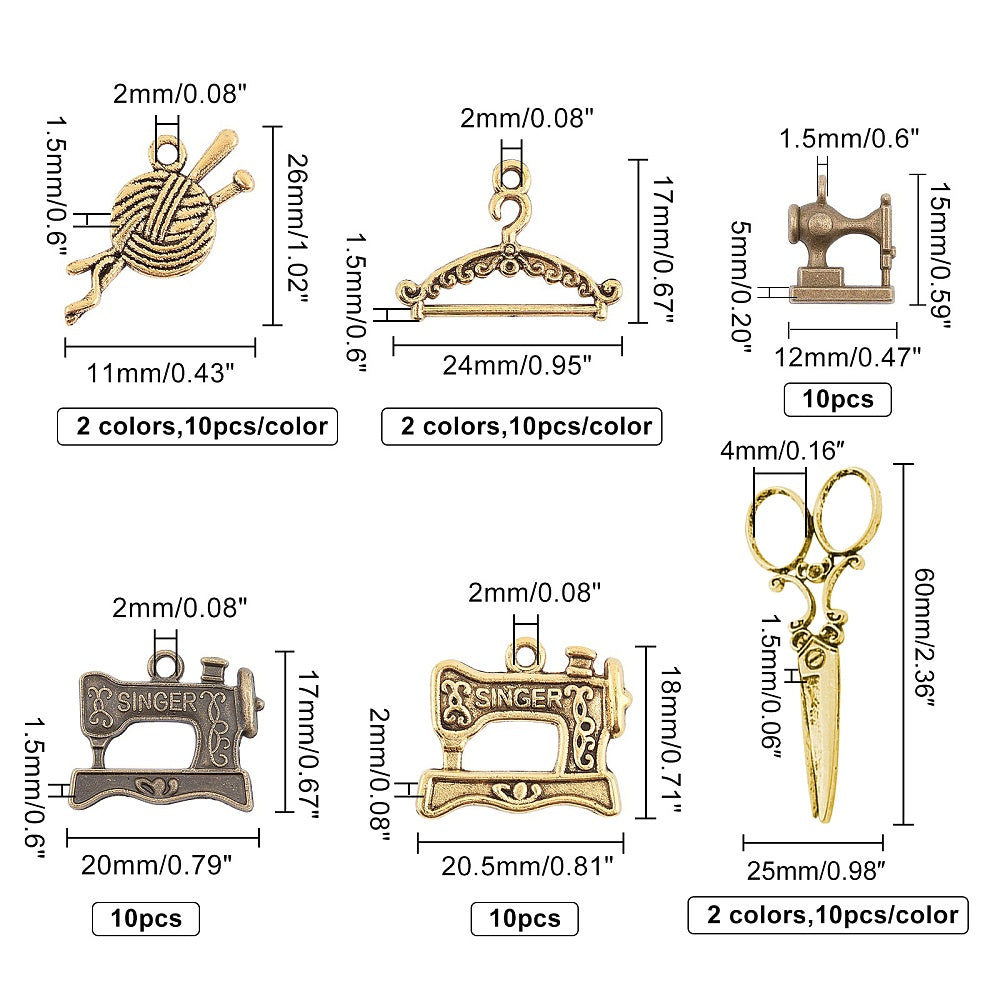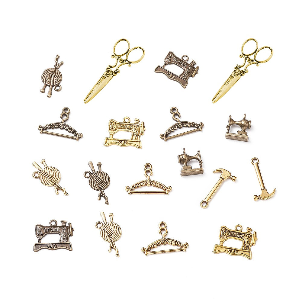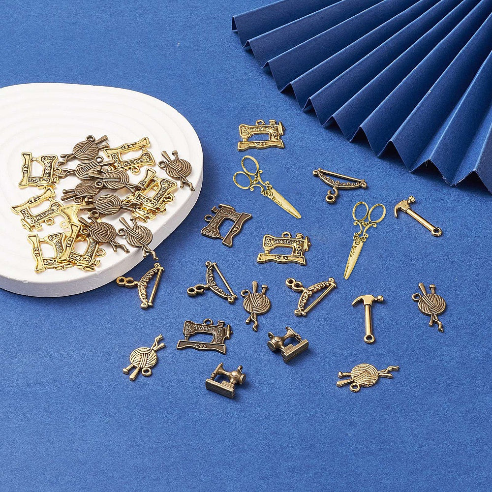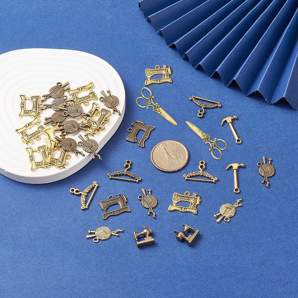 This set includes 90 antique bronze or golden mixed shaped pendants in 9 styles. Perfect for creating earrings, bracelets, necklaces, and other accessories.