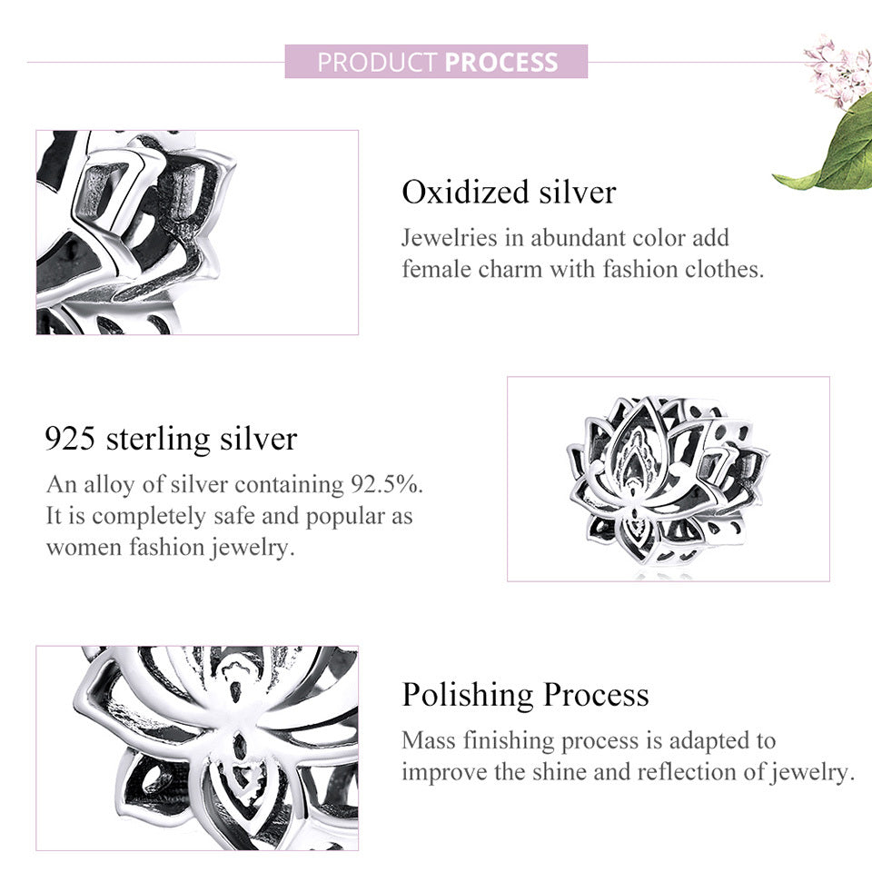 Embrace the elegance of lotus with this sterling silver charm bead, perfect for DIY jewelry. Ideal gift for any occasion.