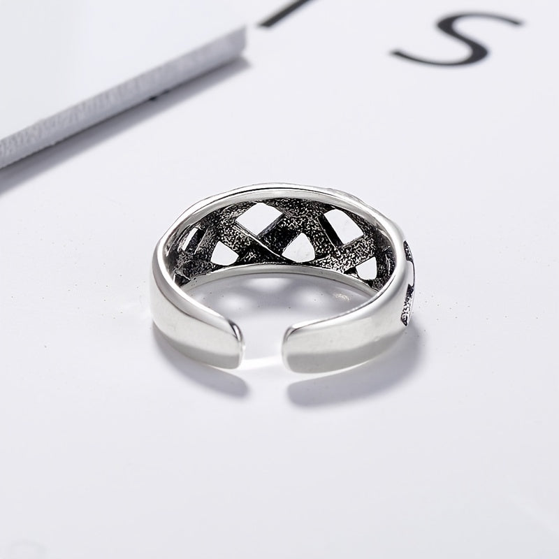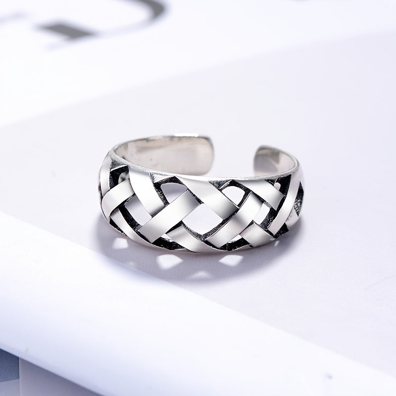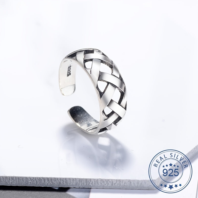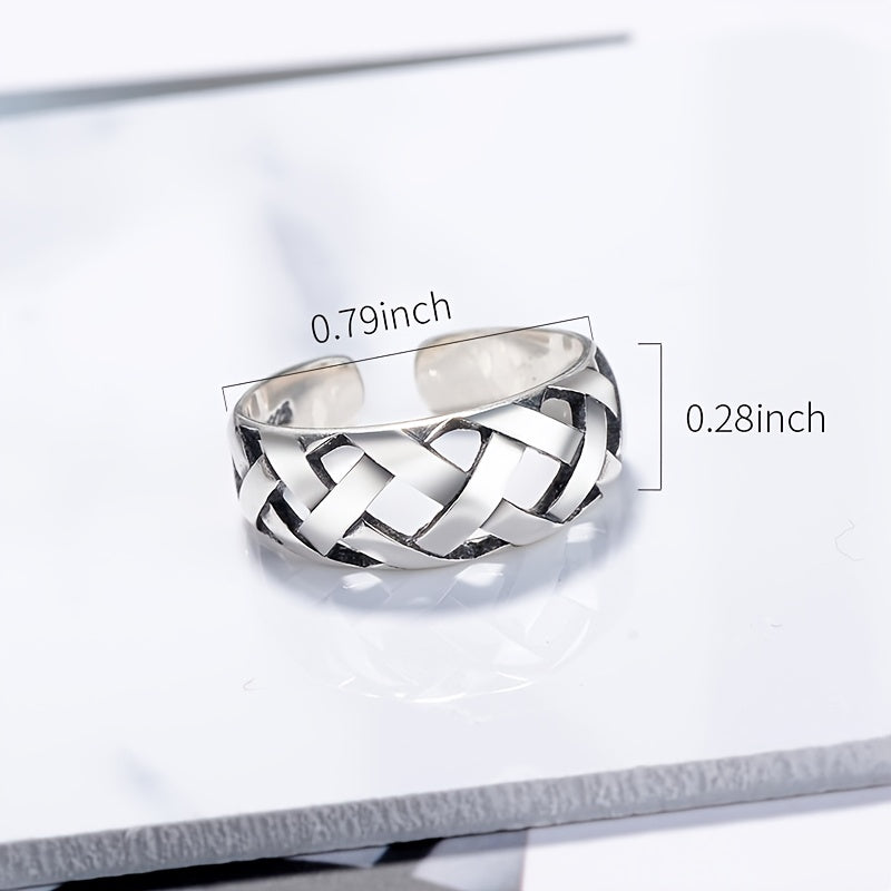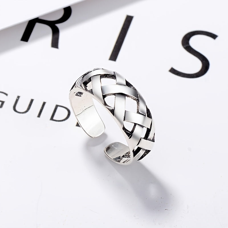 This unique men's ring features a retro design with a woven square bar open ring style. Made of 925 sterling silver, it is a stylish accessory for any outfit.
