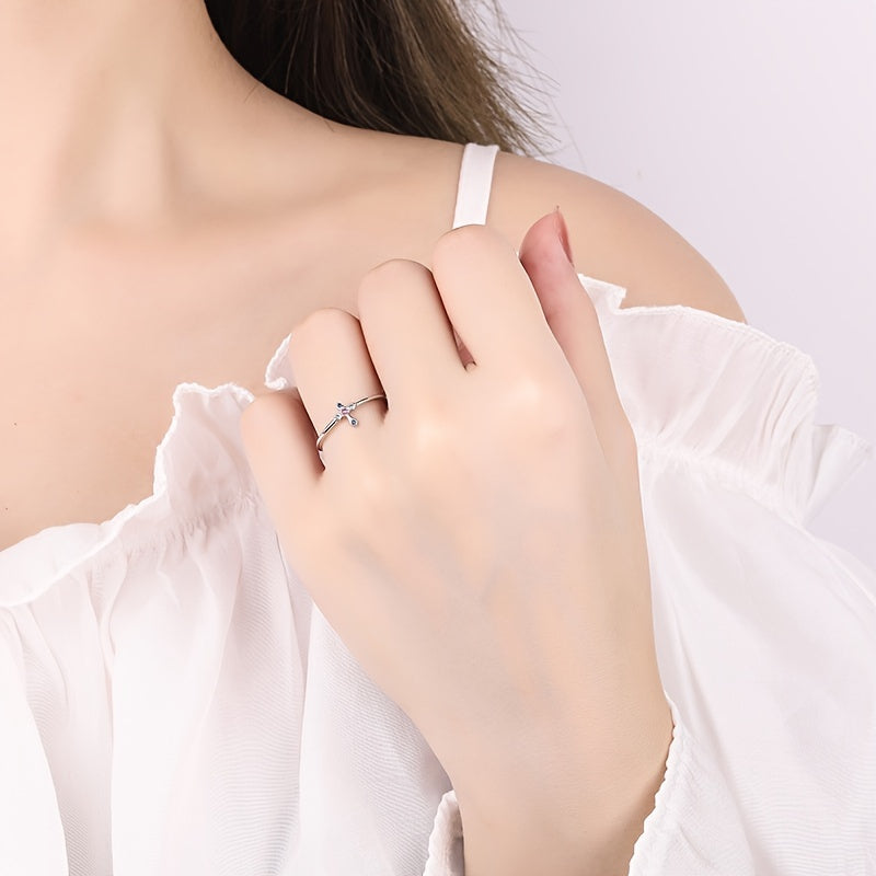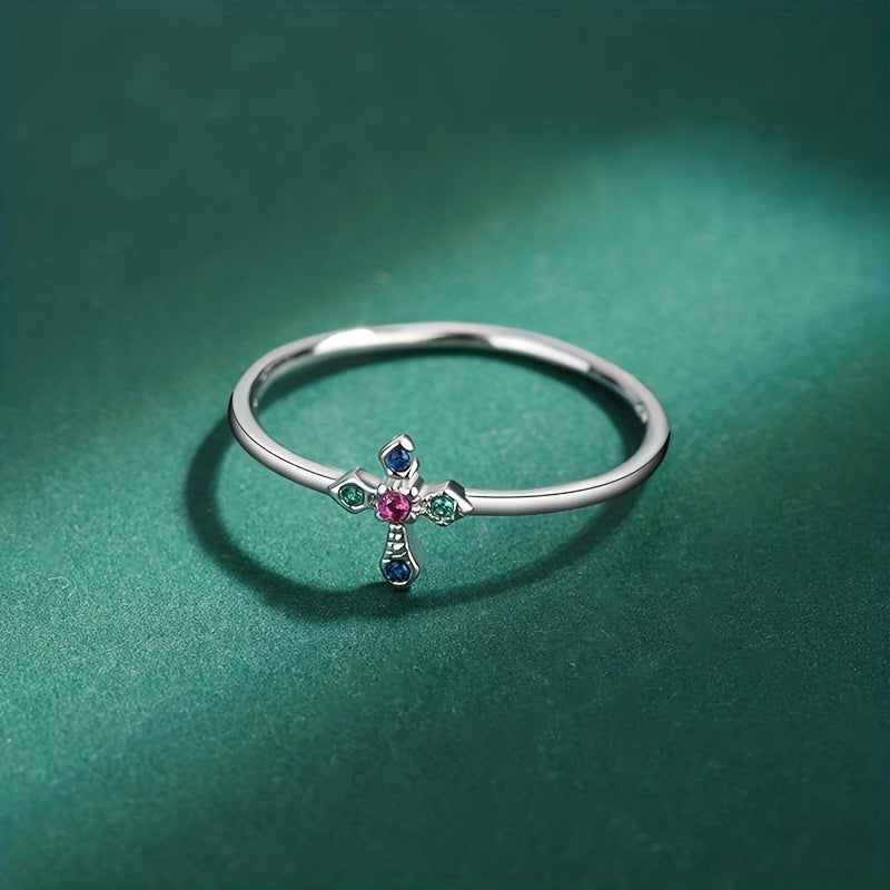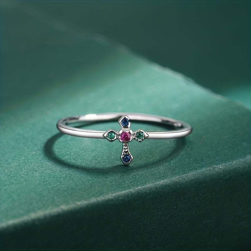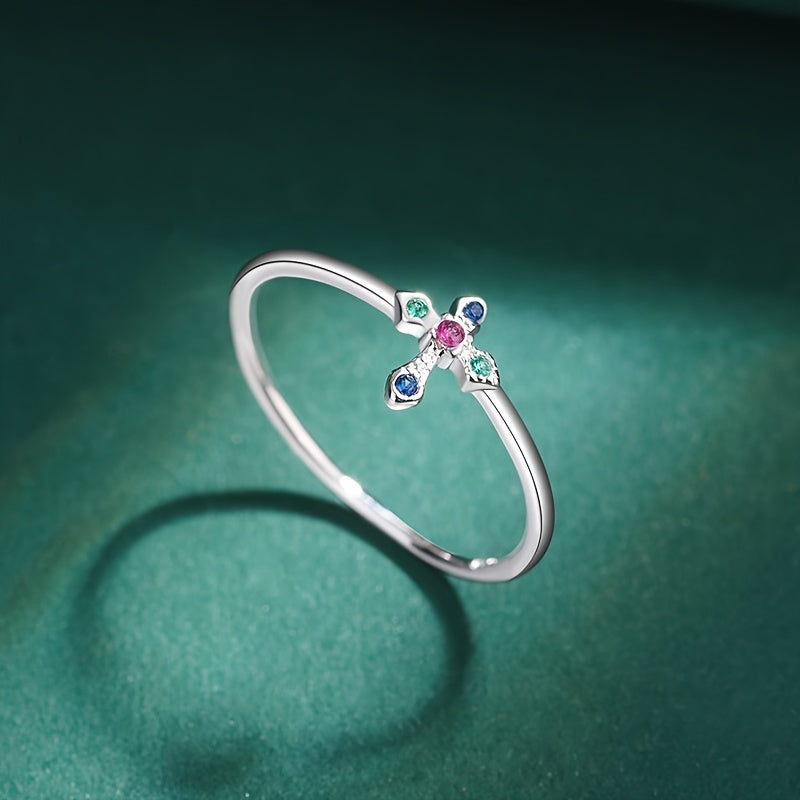 Add a touch of elegance with this stunning 925 sterling silver ring featuring a mini cross design with inlaid zircon. Perfect for everyday wear or special occasions.