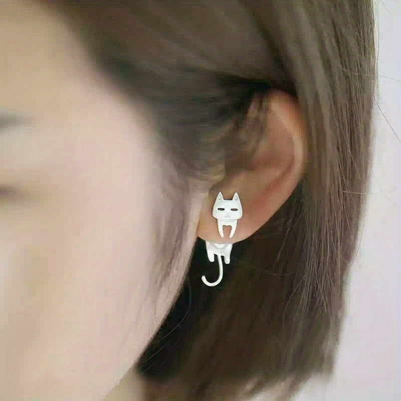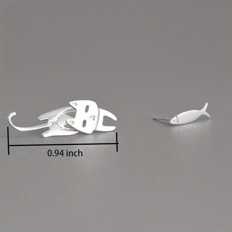These adorable cat fish stud earrings are made of 925 silver plated hypoallergenic material. Perfect as a gift for any cat lover or jewelry enthusiast.