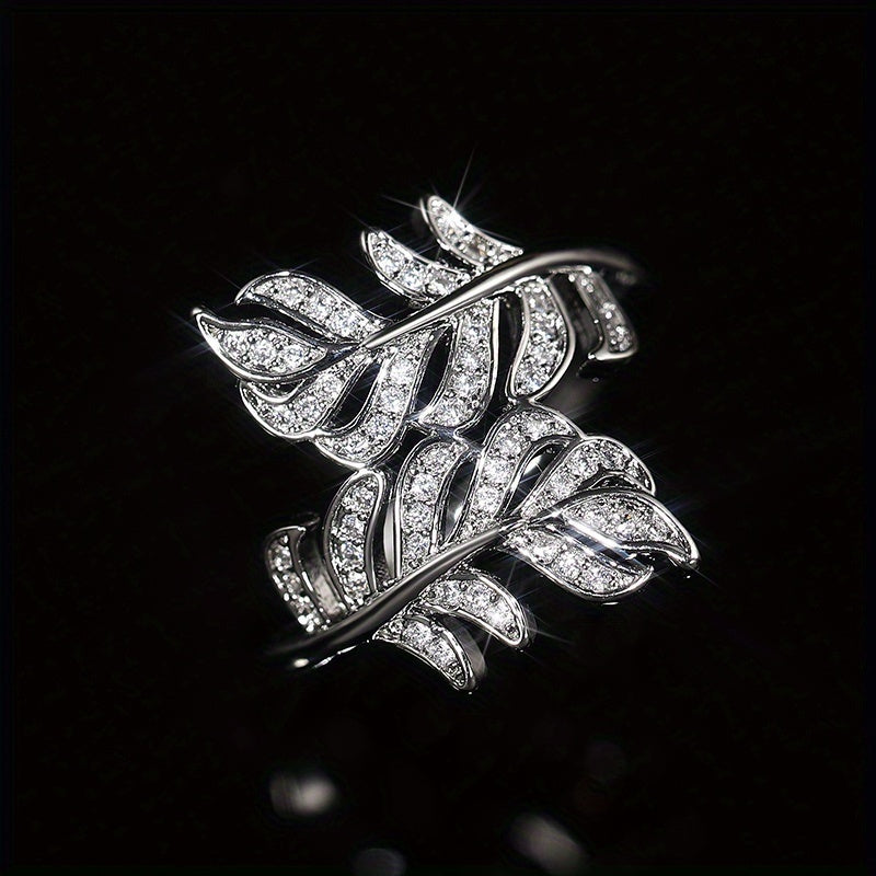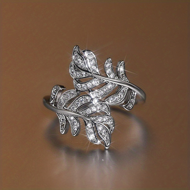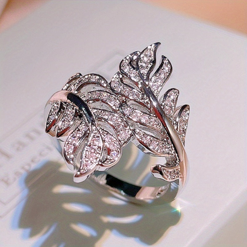 Elegant and stylish leaf ring with micro pave zircon, perfect for daily wear and casual occasions.