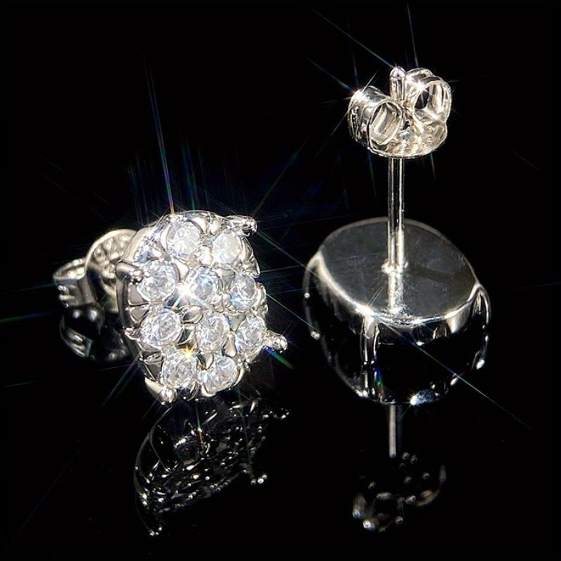 925 Silver Plated Zircon Stud Earrings - Daily Casual Accessories