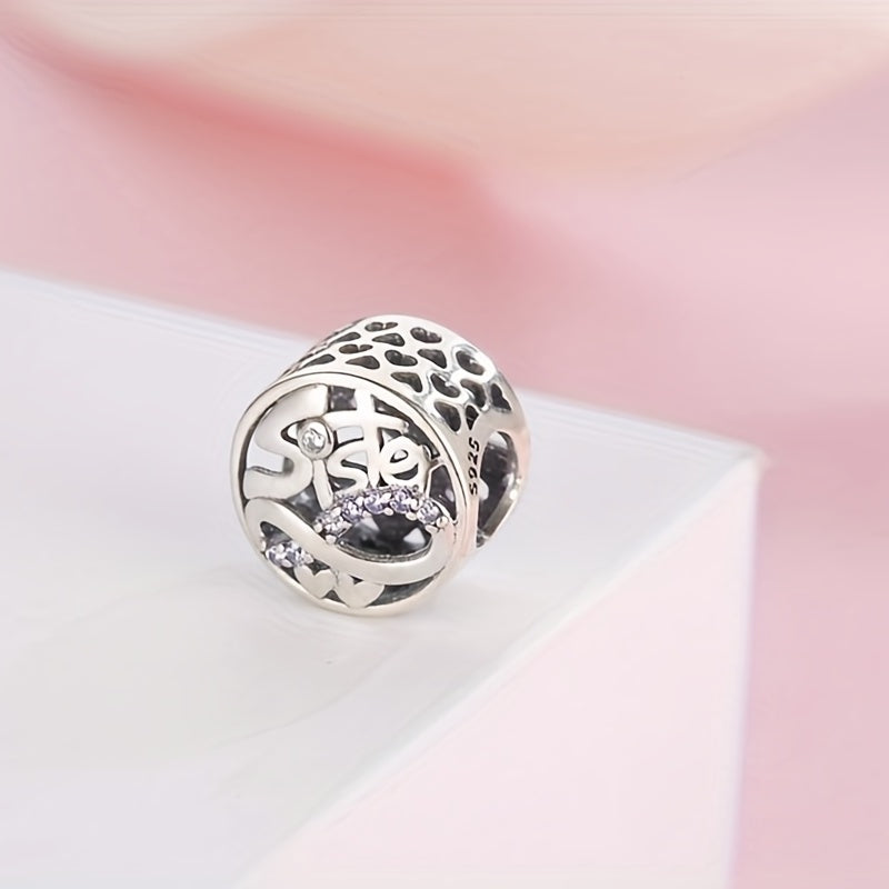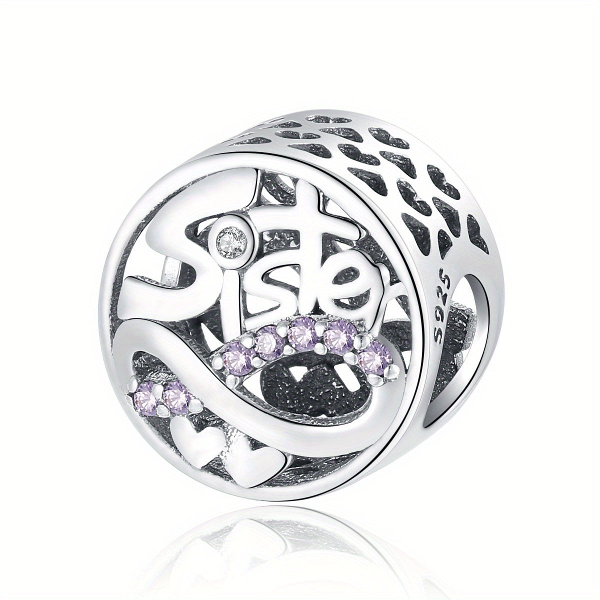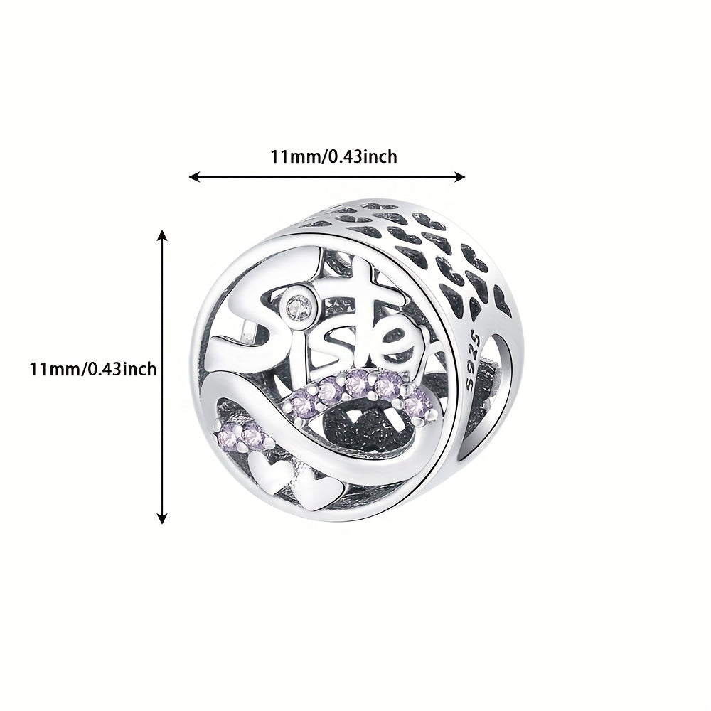 Add a touch of elegance to your jewelry with this 925 silver purple rhinestone studded sister charm. Perfect for earrings, bracelets, necklaces, and more.