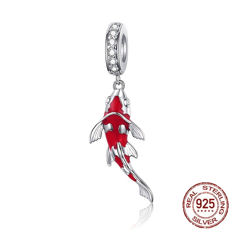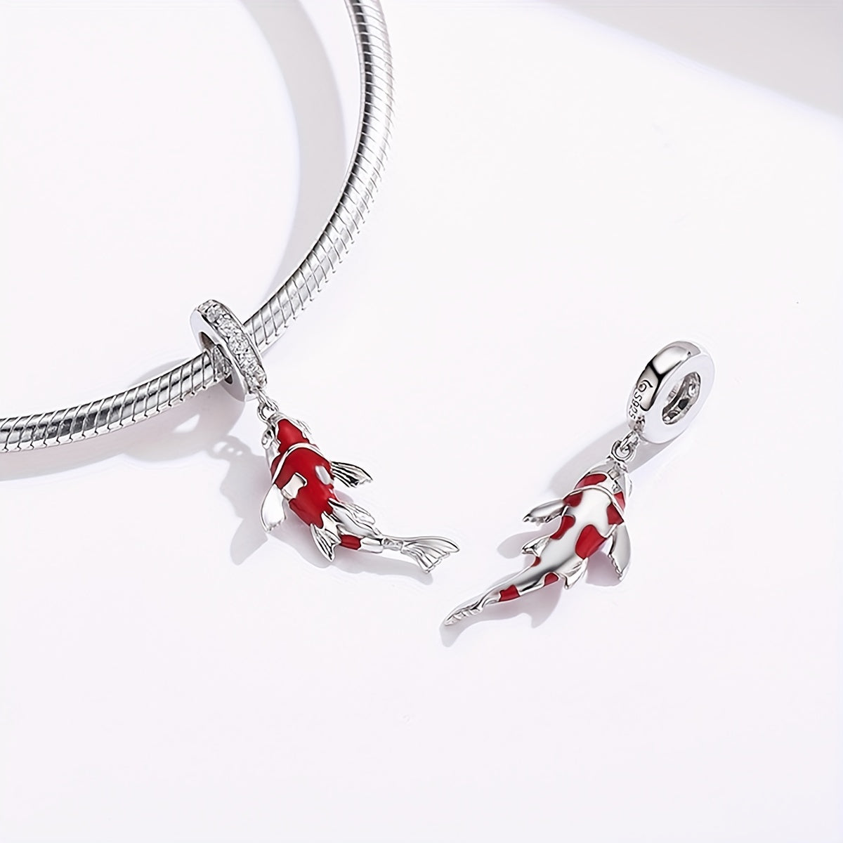 Handmade red fish design jewelry set made of 925 sterling silver, perfect for adding a touch of whimsy to your outfit.