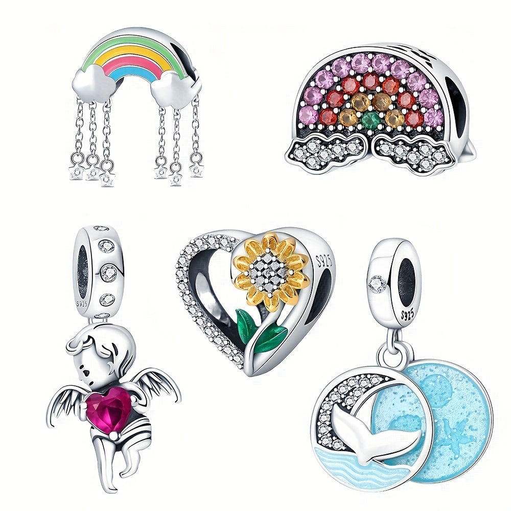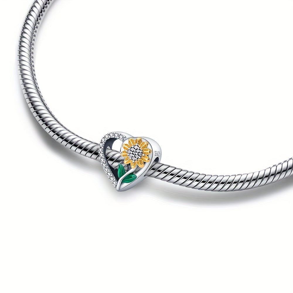 This 925 silver charm pendant features a colorful sunflower design, perfect for creating unique jewelry pieces. Ideal for DIY projects.