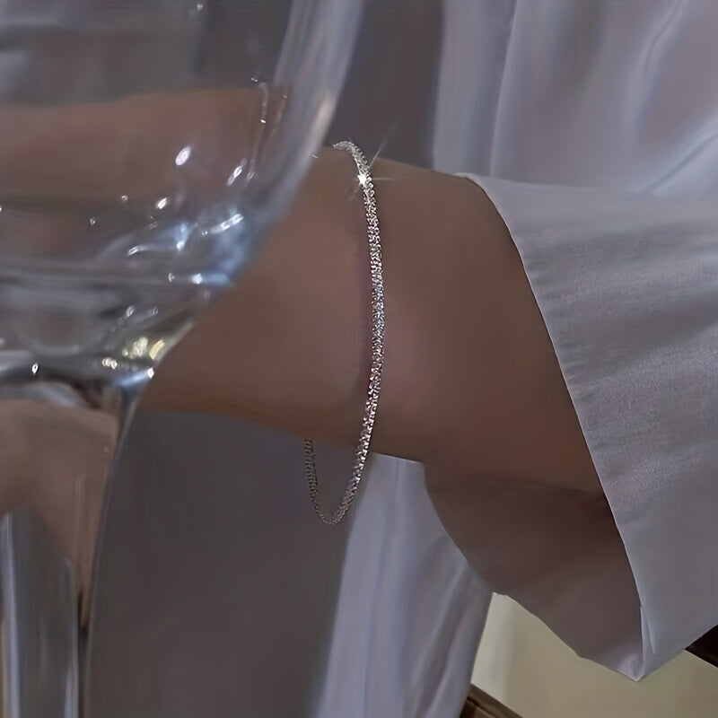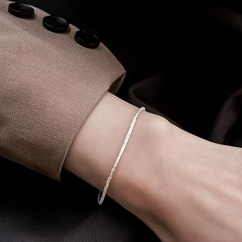 This beautiful 925 sterling silver bracelet is a perfect accessory for females. It features a silvery chain design that adds a touch of elegance to any outfit. Makes a great gift for a loved one or yourself.
