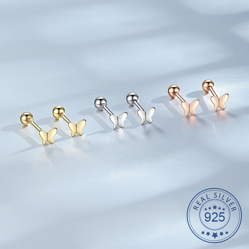 These elegant butterfly earrings are made of 925 sterling silver, perfect for a birthday gift. They feature a twisted screw design and are ideal for adding a touch of sophistication to any outfit.