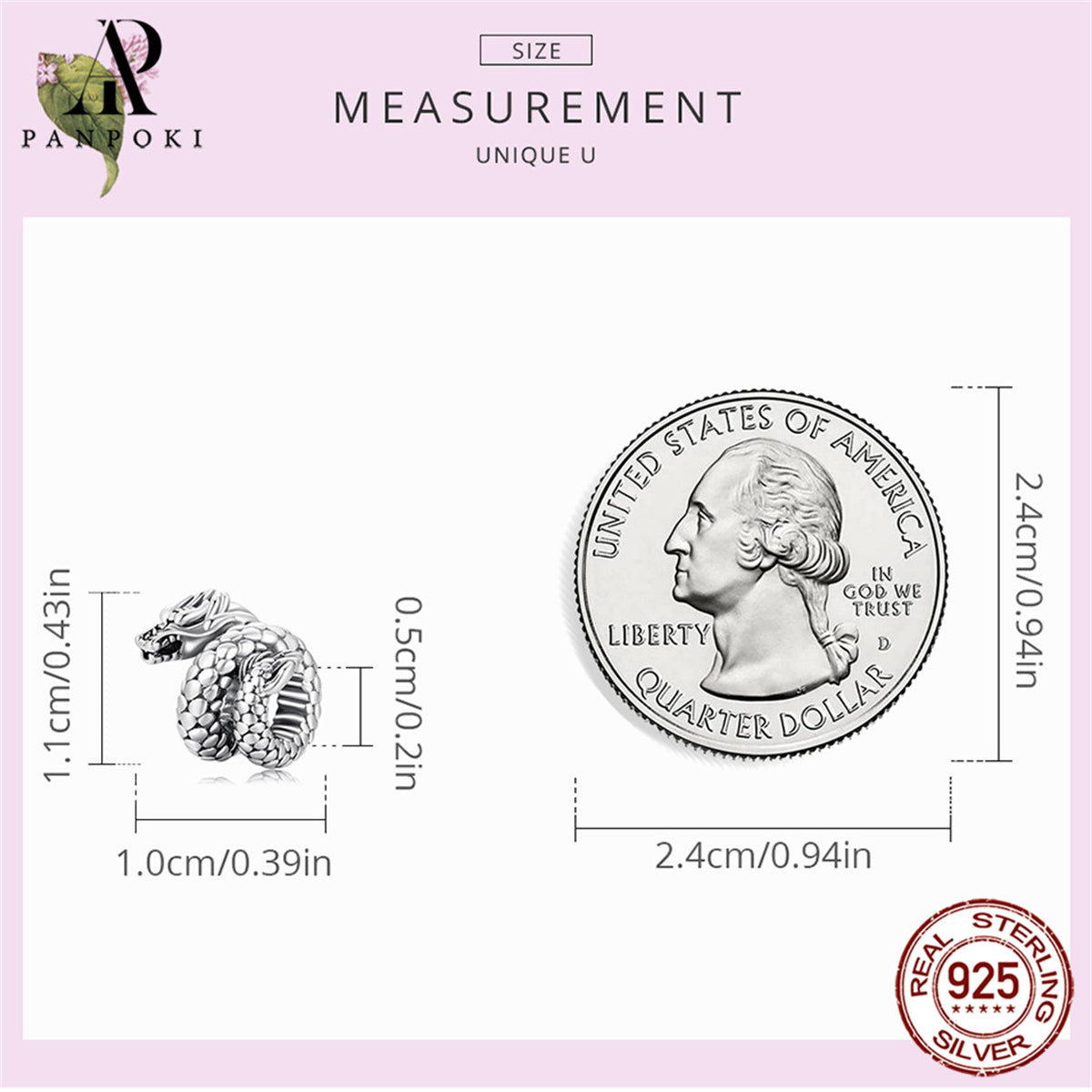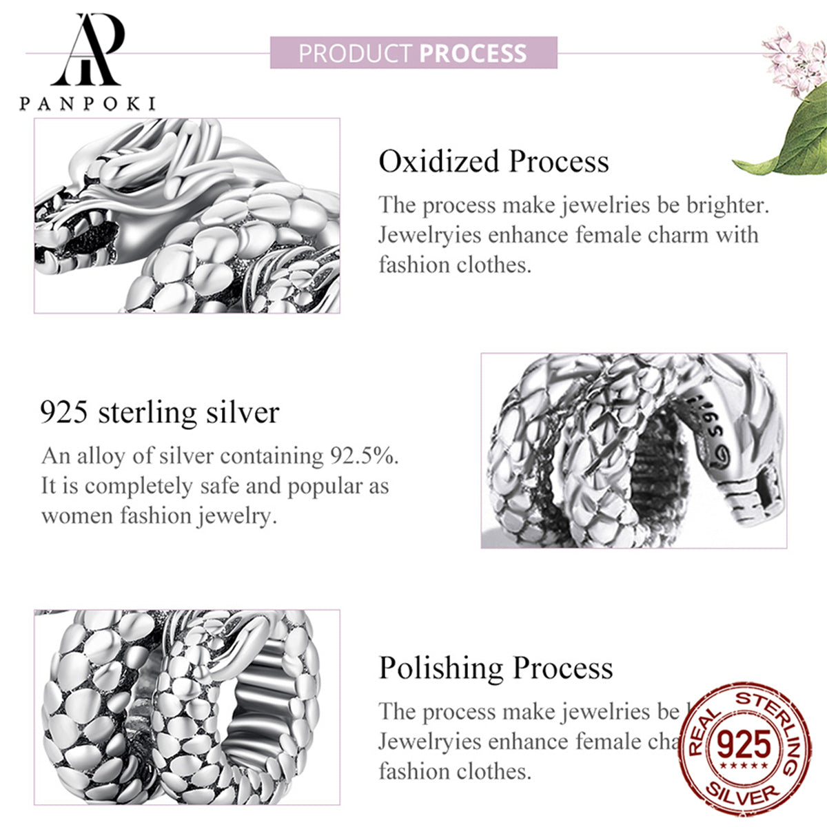 Add a touch of mystique with this dragon-shaped bead charm made of high-quality 925 sterling silver. Perfect for DIY jewelry projects or as a gift for women.